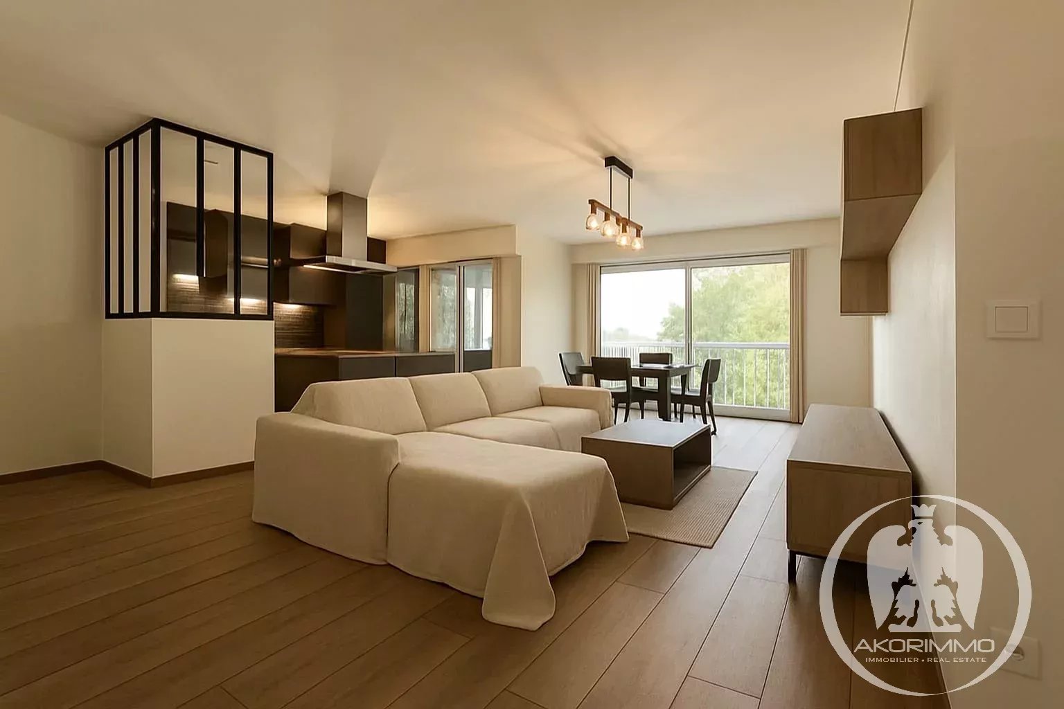 In excellent general condition, you will be seduced from the entrance by its vast living room of 38m2, opening onto a fully equipped modern and functional American kitchen, opening onto a first terrace of 10m2. You will find 3 beautiful bedrooms, one of which is en suite with it's own shower room, a second large bedroom of over 12m2 with its own fitted dressing room of 4m2 and direct access to the second terrace. A third bedroom also benefits from this access. A second shower room, a separate toilet, and plenty of storage space complete this property, as well as a cellar and shared parking within the condominium. A rare property worth viewing quickly, ideal for families and those seeking space and tranquility while being close to shops and amenities.