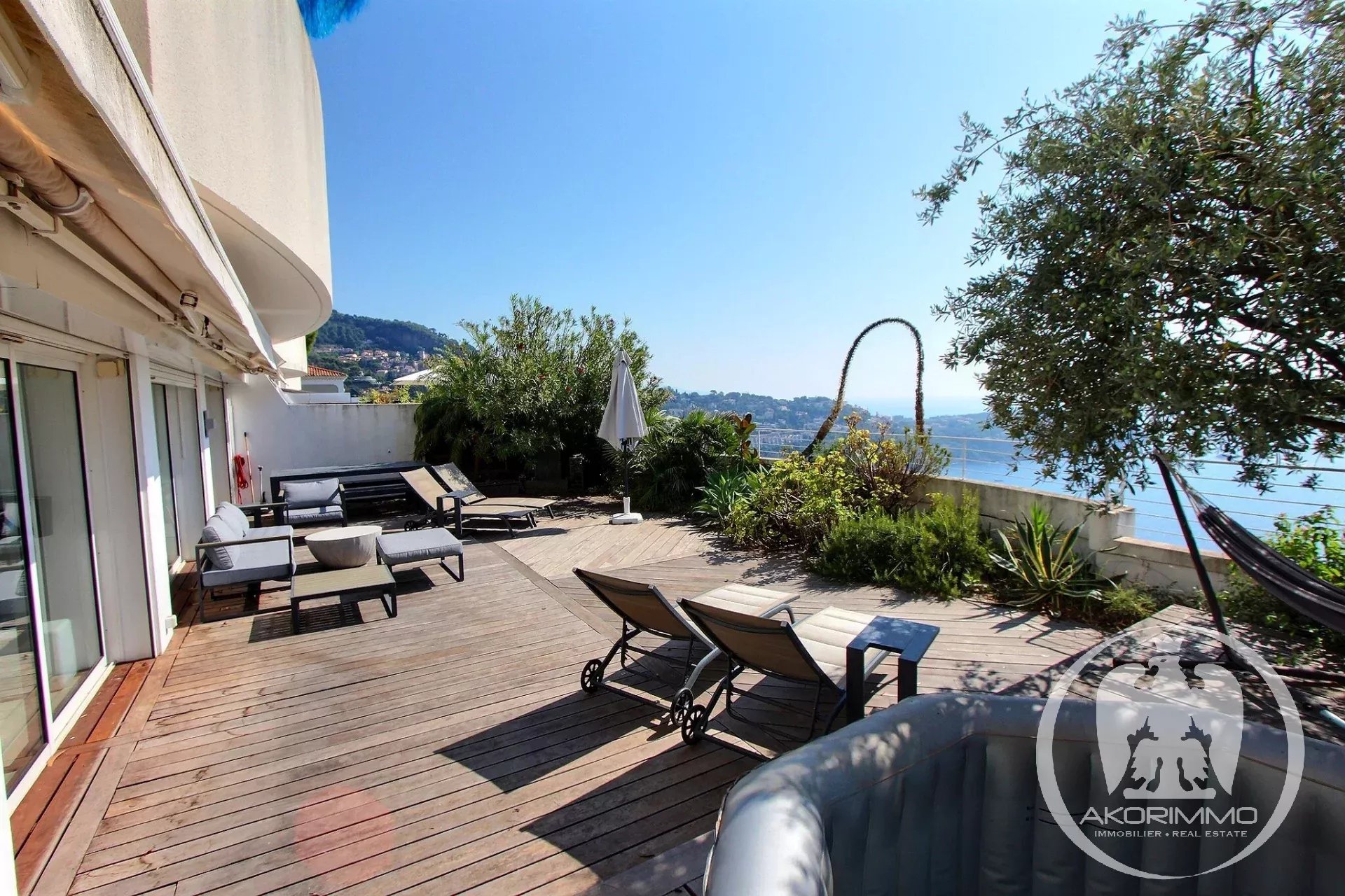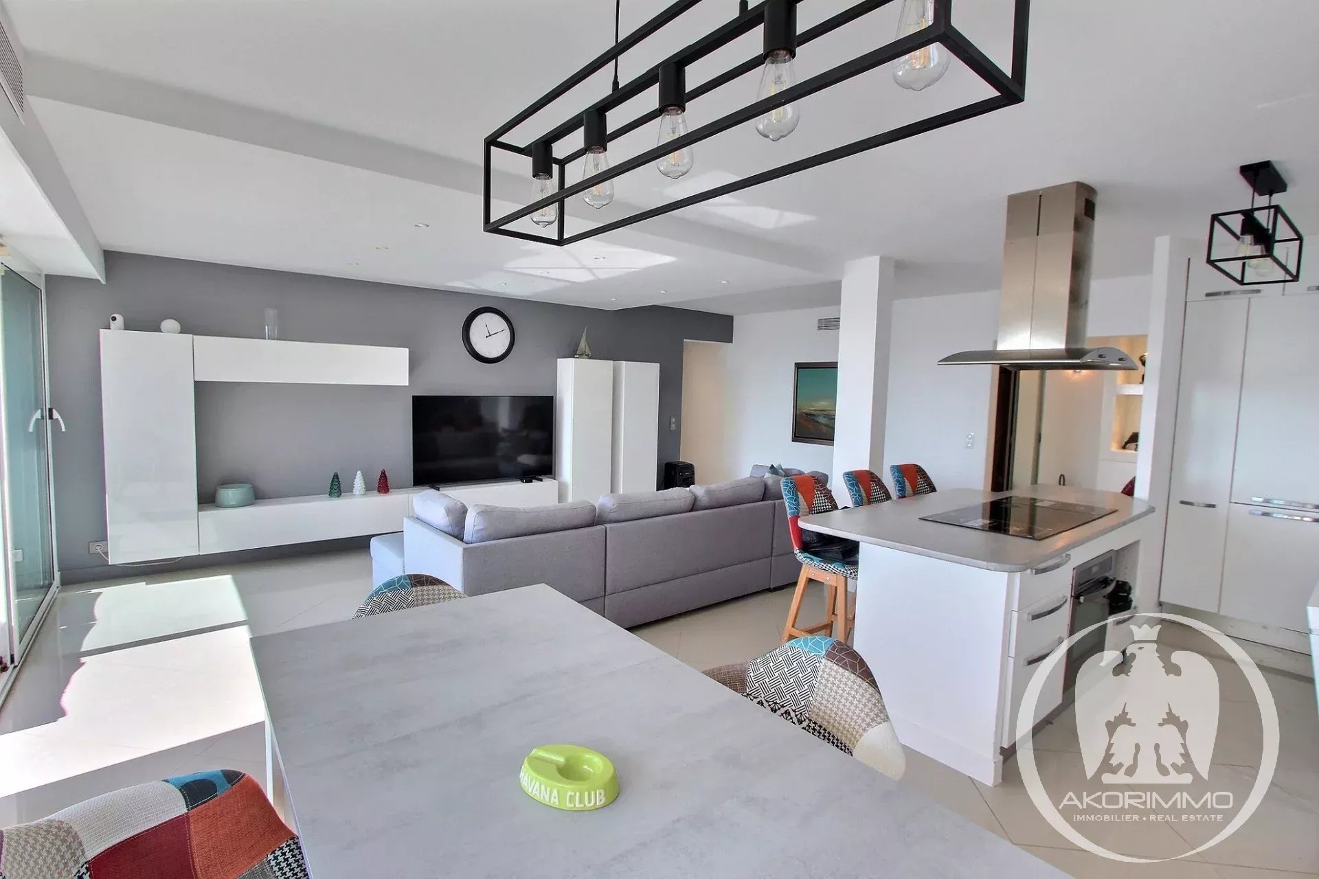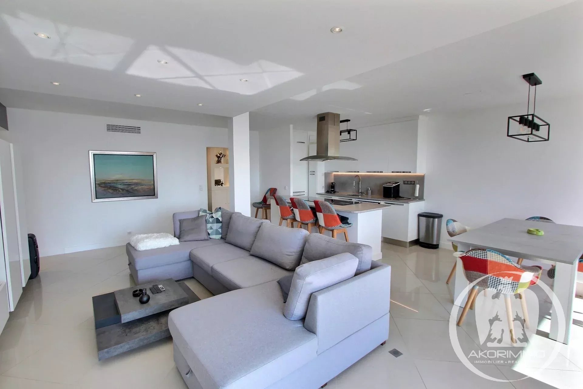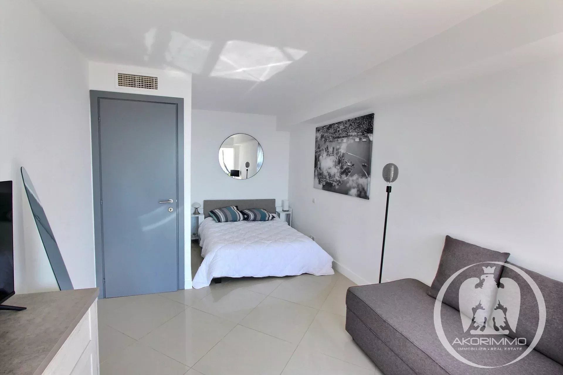 In Roquebrune Cap Martin, at the beginning of the avenue du Serret, near Monaco, in a luxury residence with swimming pool, this magnificent 114m2 3-room flat benefits from a vast 83m2 terrace. The flat comprises a beautiful entrance hall with storage space, a vast living room with open-plan fitted and equipped kitchen (43m2), a master bedroom with integrated bathroom (20m2), a second 15m2 bedroom, a shoer room, a laundry room and a 10m2 dressing room. The living areas and the two bedrooms open onto the 83m2 terrace with its green spaces, allowing you to enjoy the panoramic sea views, in particular the view of Cap Martin. Closed garage with cellar. Possibility of buying a 2nd garage for €50,000. A must-see !