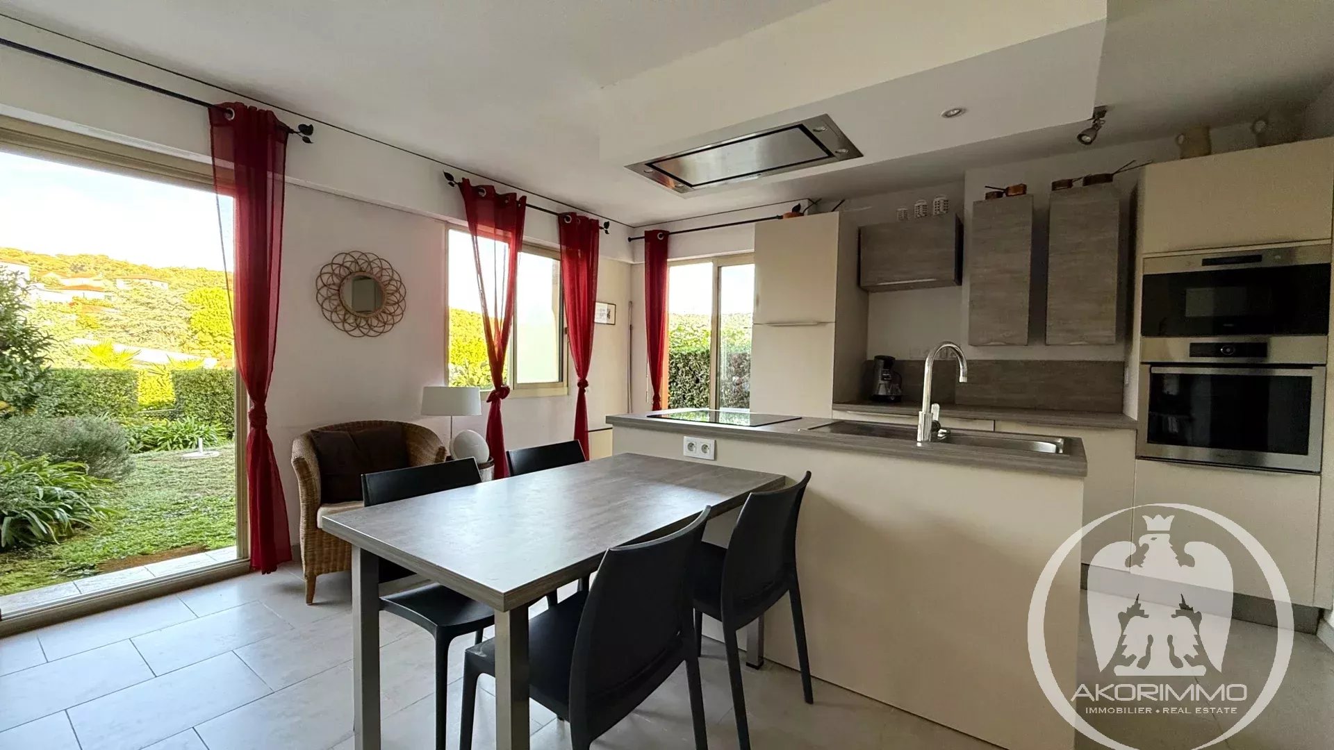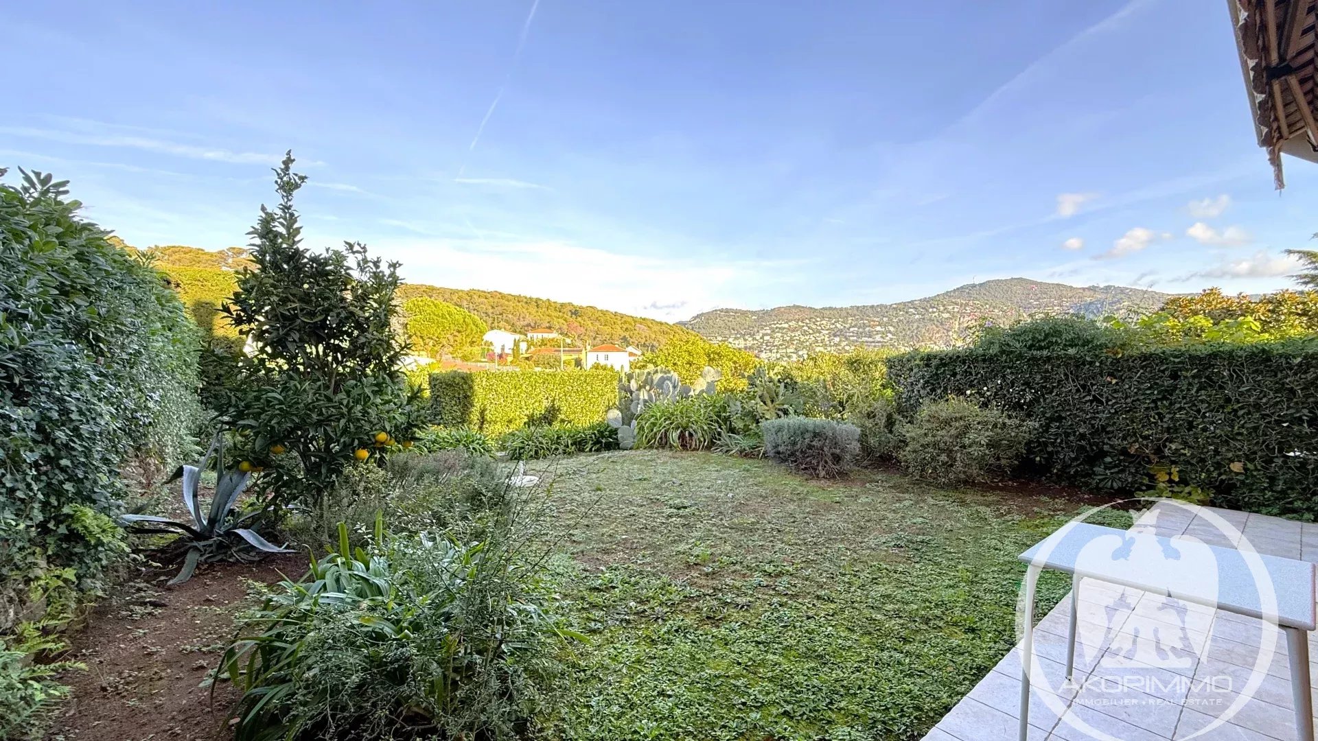 Mont-Boron / Av. des Hespérides : Dans une charmante résidence de bon standing avec piscine et tennis, appartement 4 pièces au rez-de-jardin d'une maison située au calme absolu. L'entrée dessert la pièce à vivre donnant sur une terrasse et un spacieux jardin arboré de 182m2 bénéficiant d'une jolie vue dégagée, cuisine américaine aménagée et équipée, trois chambres, placards, salle de bains et wc indépendant. Environnement résidentiel, calme et verdoyant.