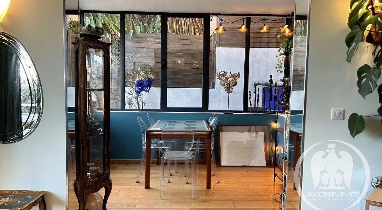 NICE - PORT Port, dans un secteur privilégié et très recherché, à quelques pas de la mer/plage, villa de 102m2 habitable, sur 2 niveaux, composée d'un séjour/salle à manger donnant sur une terrasse avec vue mer et verdure, une cuisine, une chambre et toilettes invités. A l'étage 2 chambres avec une salle de bains, une salle de douche et deux toilettes. La villa est exposée sud-ouest, au calme absolu. L'extérieur bénéficie d'un jardin et d'une petite piscine. Un garage fermé complète ce bien. Véritable coup de cœur.