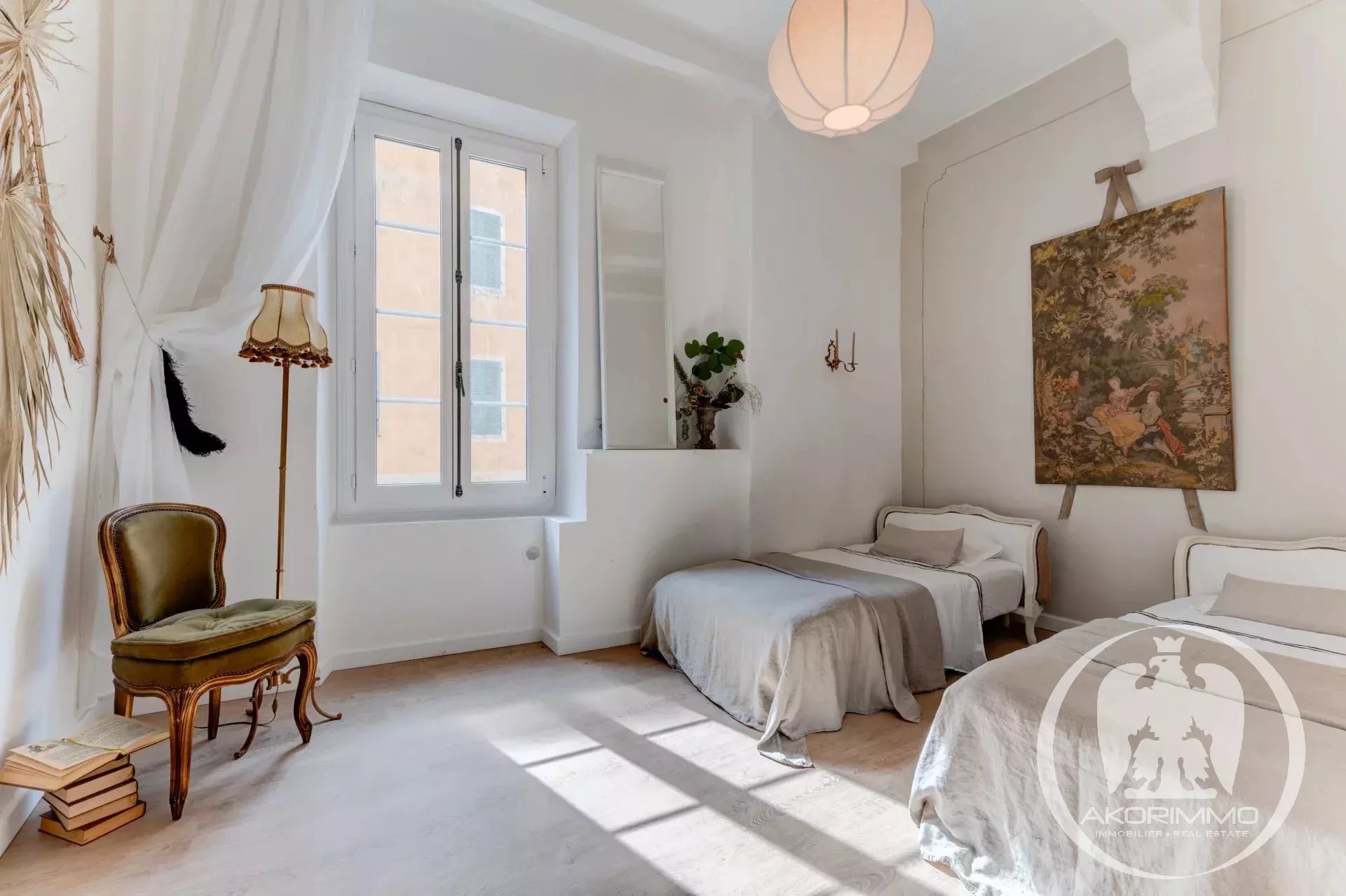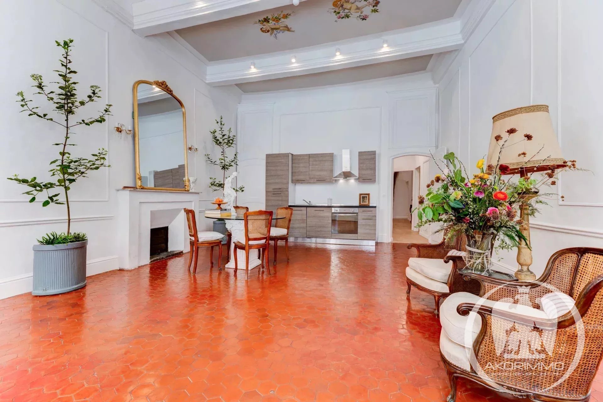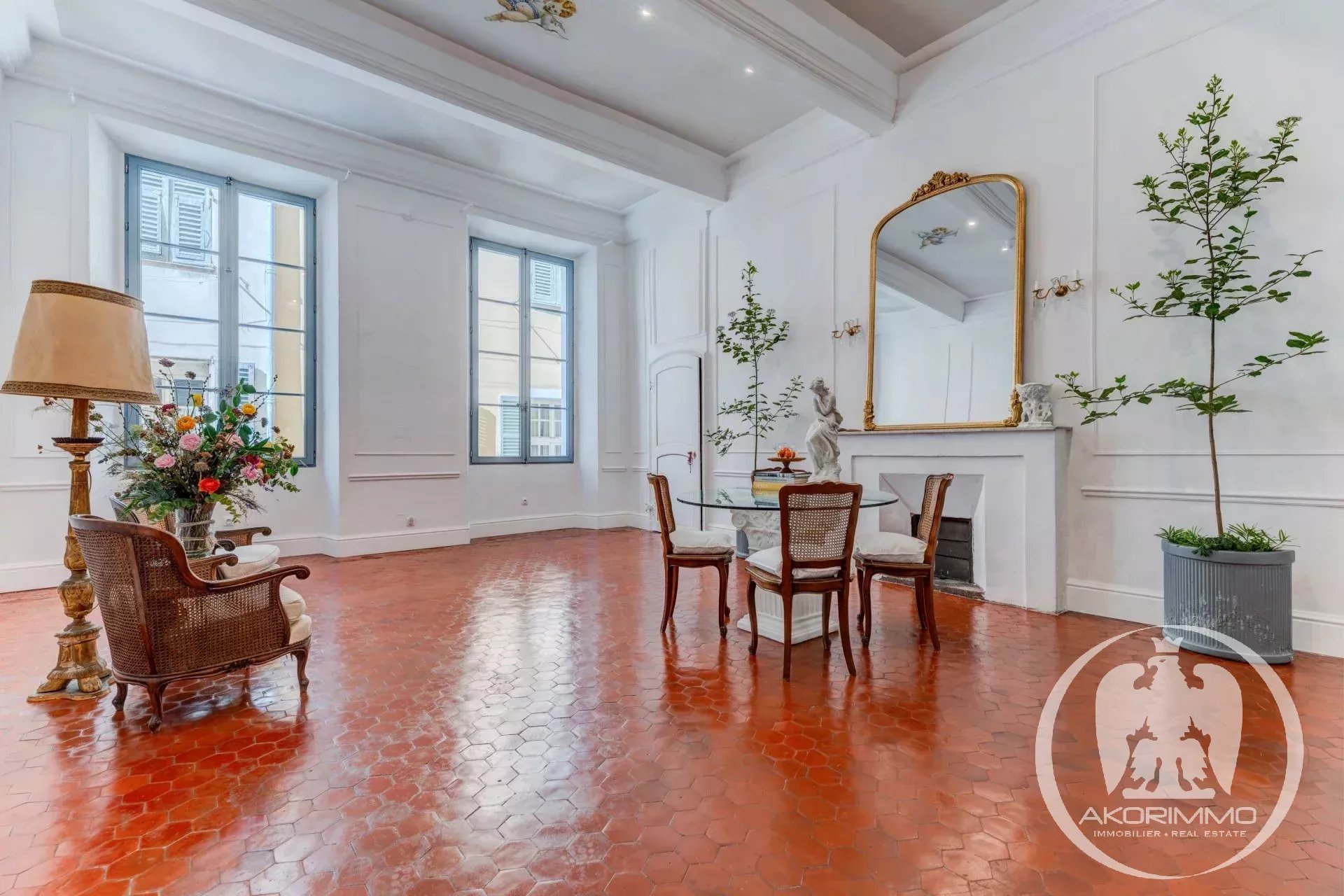 Vieux Nice - 3 pièces dans ancien Palais Vieux Nice : dans un ancien Palais du début du XVIII ème siècle, magnifique appartement d'angle de 3 pièces d'une surface de 83 m2 situé dans le coeur du Vieux Nice. L'appartement au charme authentique est composé d'une vaste entrée avec mezzanine, un magnifique séjour d'environ 40m2 avec de belles ouvertures, une hauteur de plafond de 4m, une cheminée et tommettes d'époque au sol, une cuisine US équipée, une chambre exposée Sud avec vue sur la cathédrale et le château, une seconde chambre, une salle de bain avec douche et WC, un second toilette indépendant et de nombreux rangements. Appartement très atypique avec beaucoup de cachet. Coup de coeur assuré! Les informations sur les risques auxquels ce bien est exposé sont disponibles sur le site Géorisques : georisques.gouv.fr