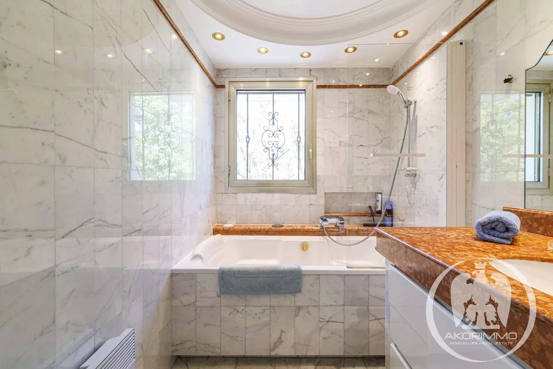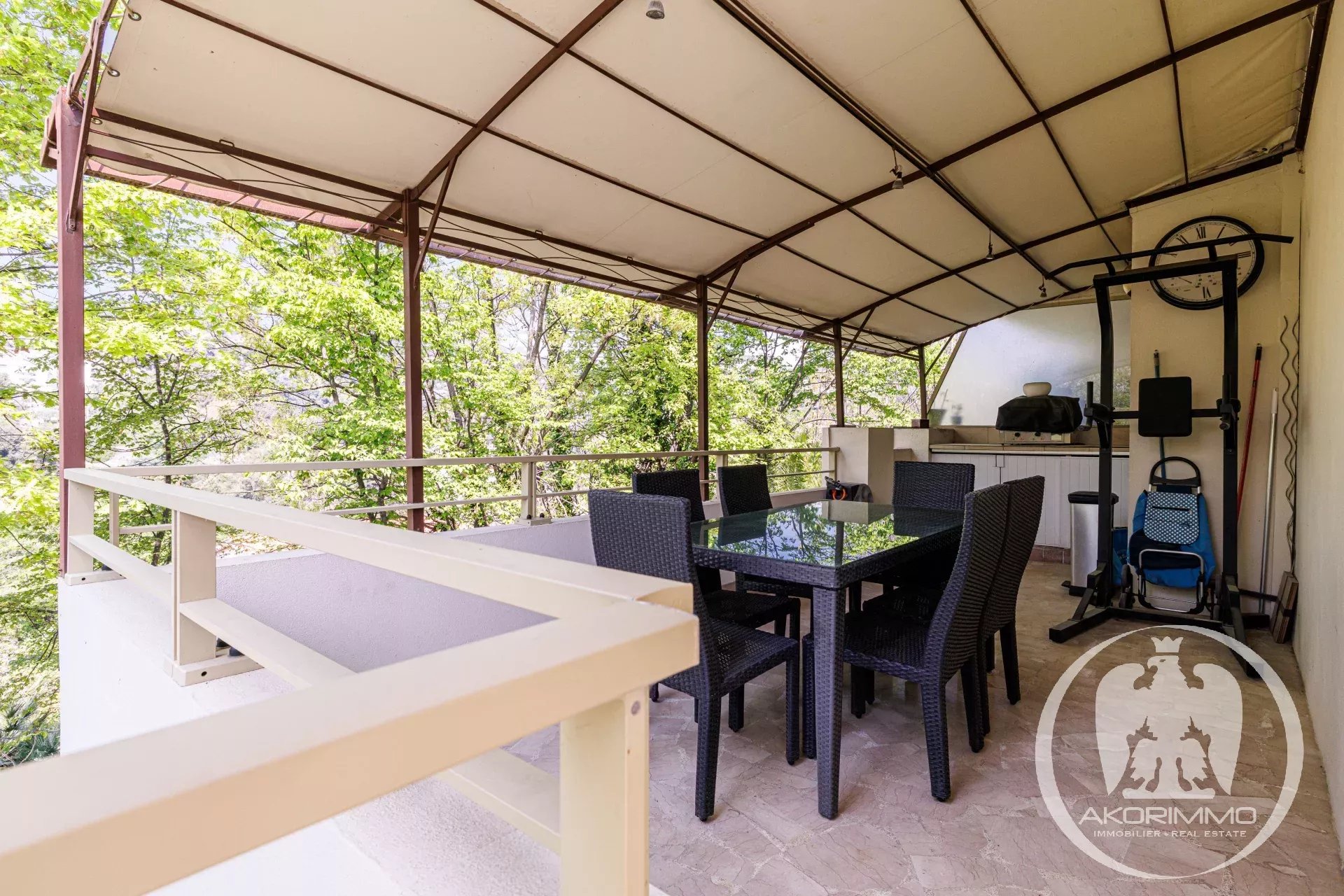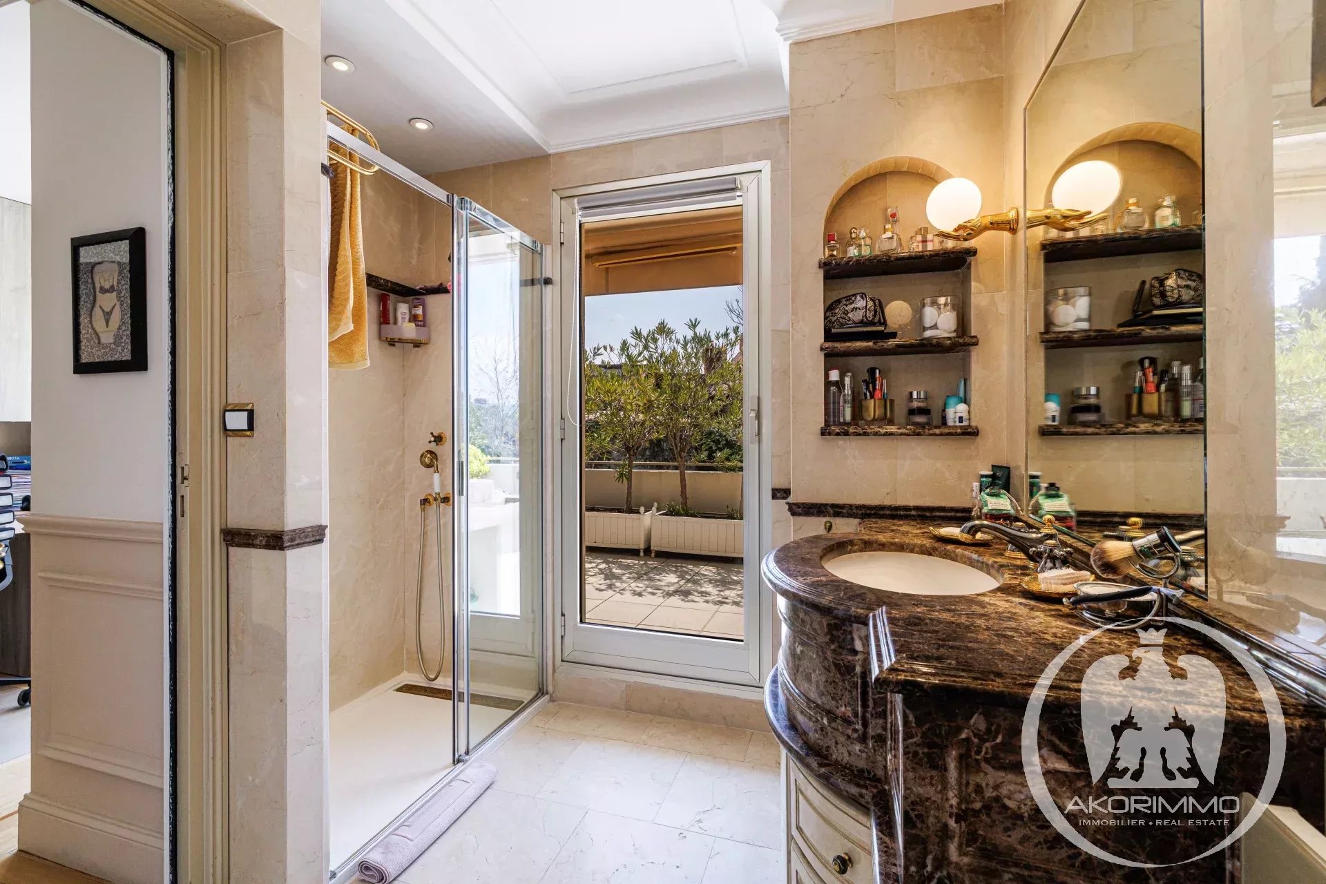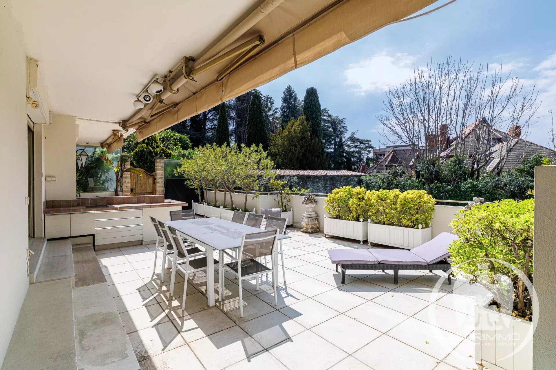 Au niveau du séjour, une très large terrasse principale avec accès privé et direct à la piscine de la résidence. Une autre terrasse plus ombragée, accessible par la cuisine, avec cuisine d'été idéale pour vos repas en extérieur.