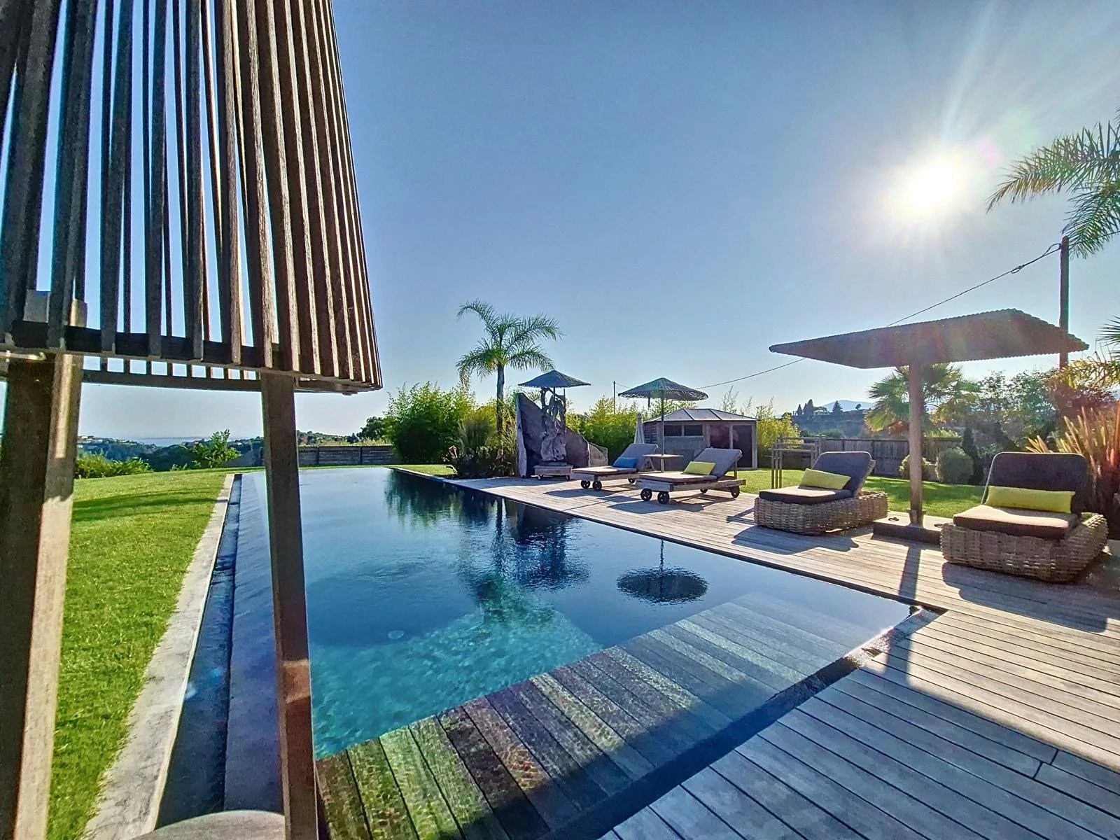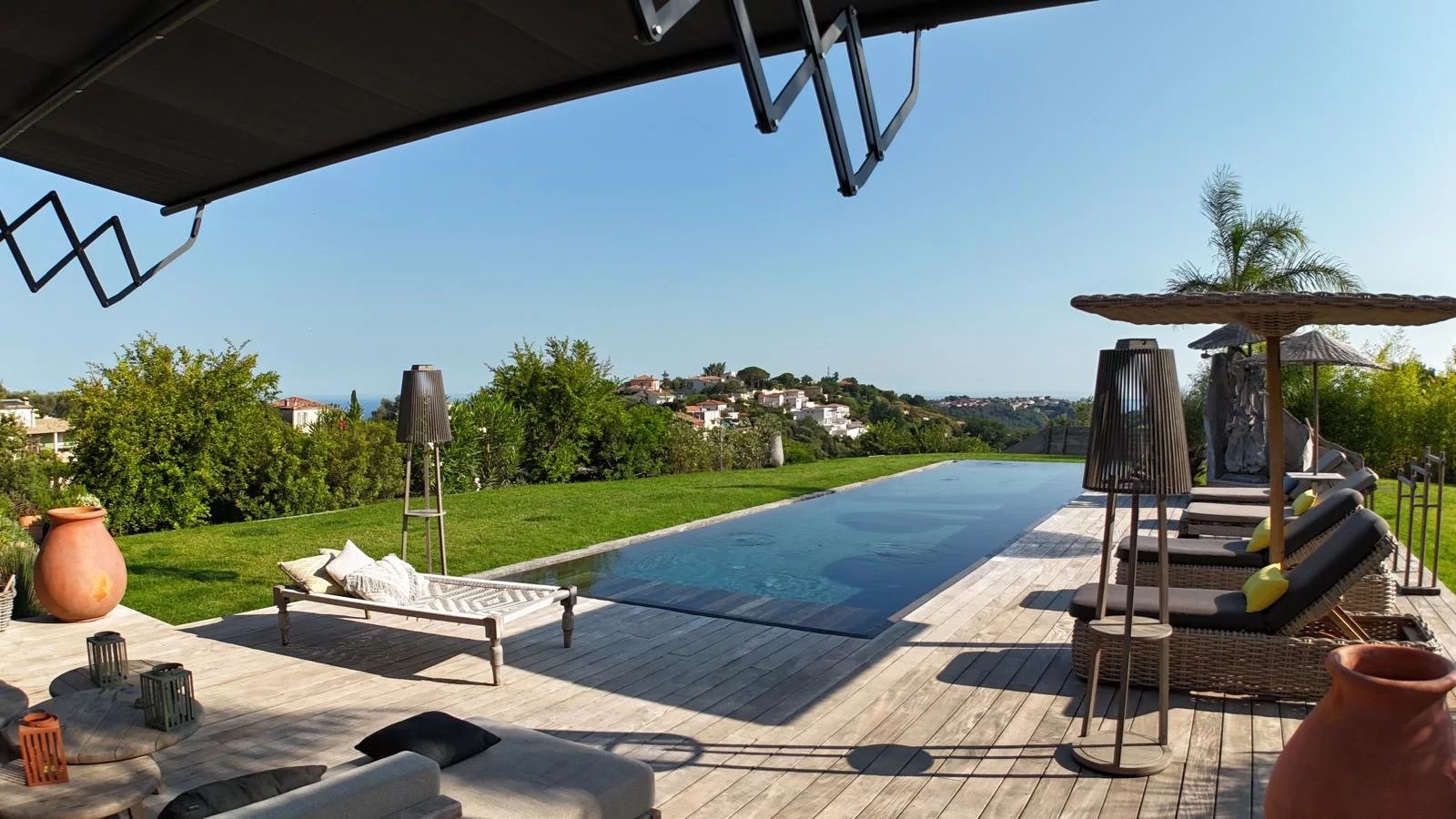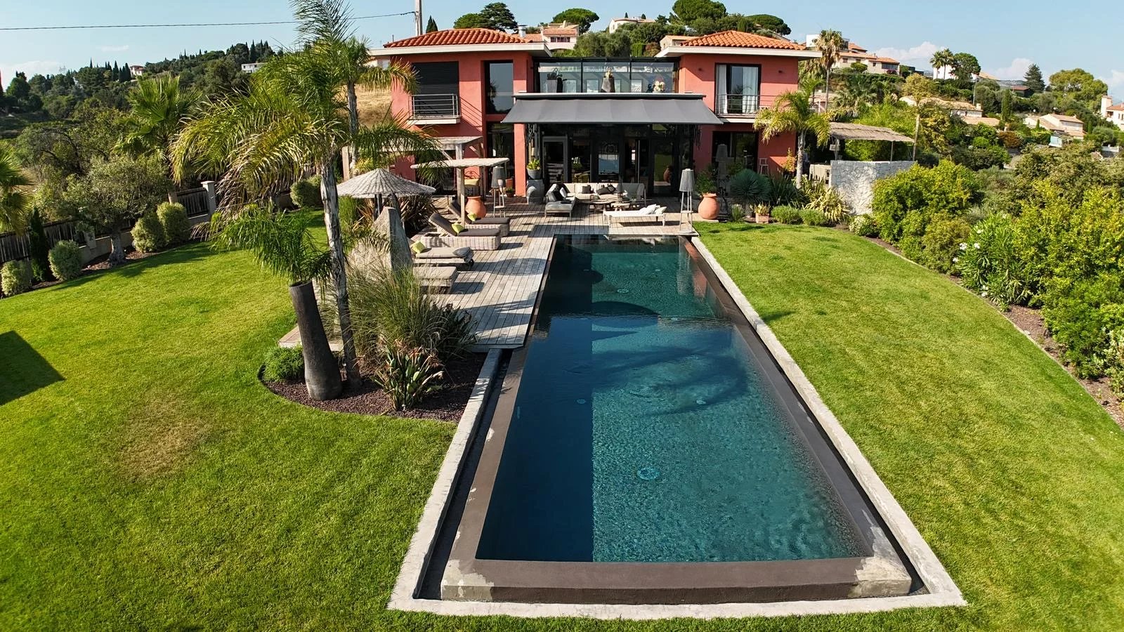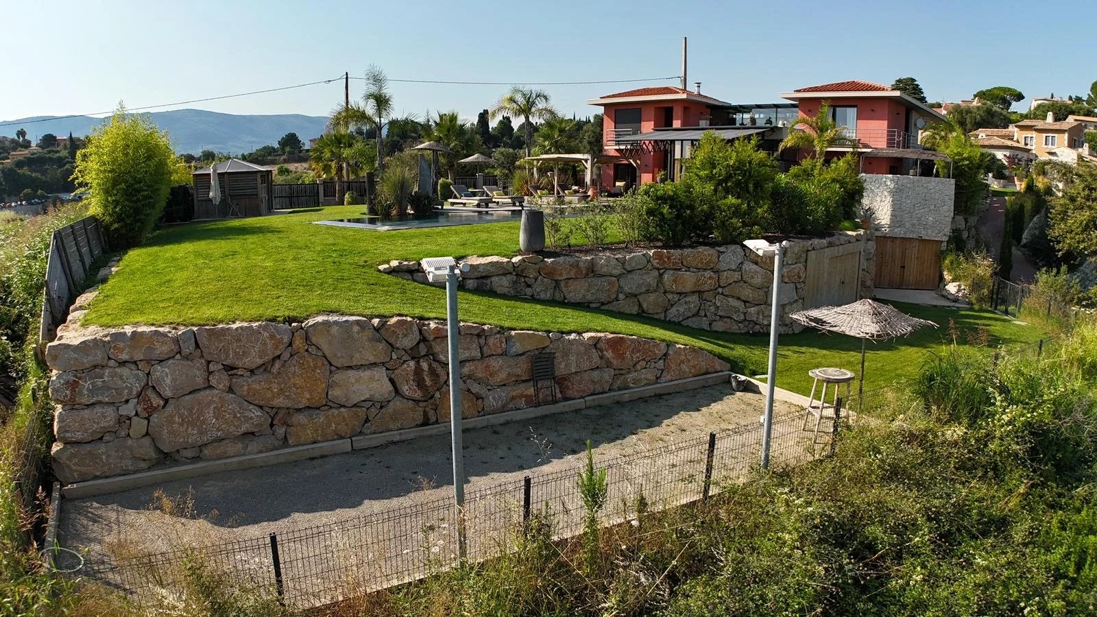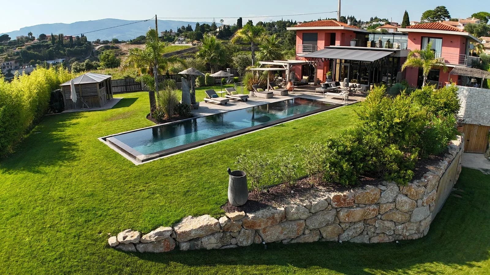 L’emplacement est rare : à seulement 15 minutes de la promenade des anglais et de ses plages, de l’aéroport international de Nice, tout proche de l’entrée d’autoroute qui dessert Monaco, Cannes, Saint-Tropez ou l’Italie en un temps record et les stations de ski (Auron,Isola,Valberg) Le tout dans un environnement naturel d’exception, entre vignobles et mer, à l’abri des regards.