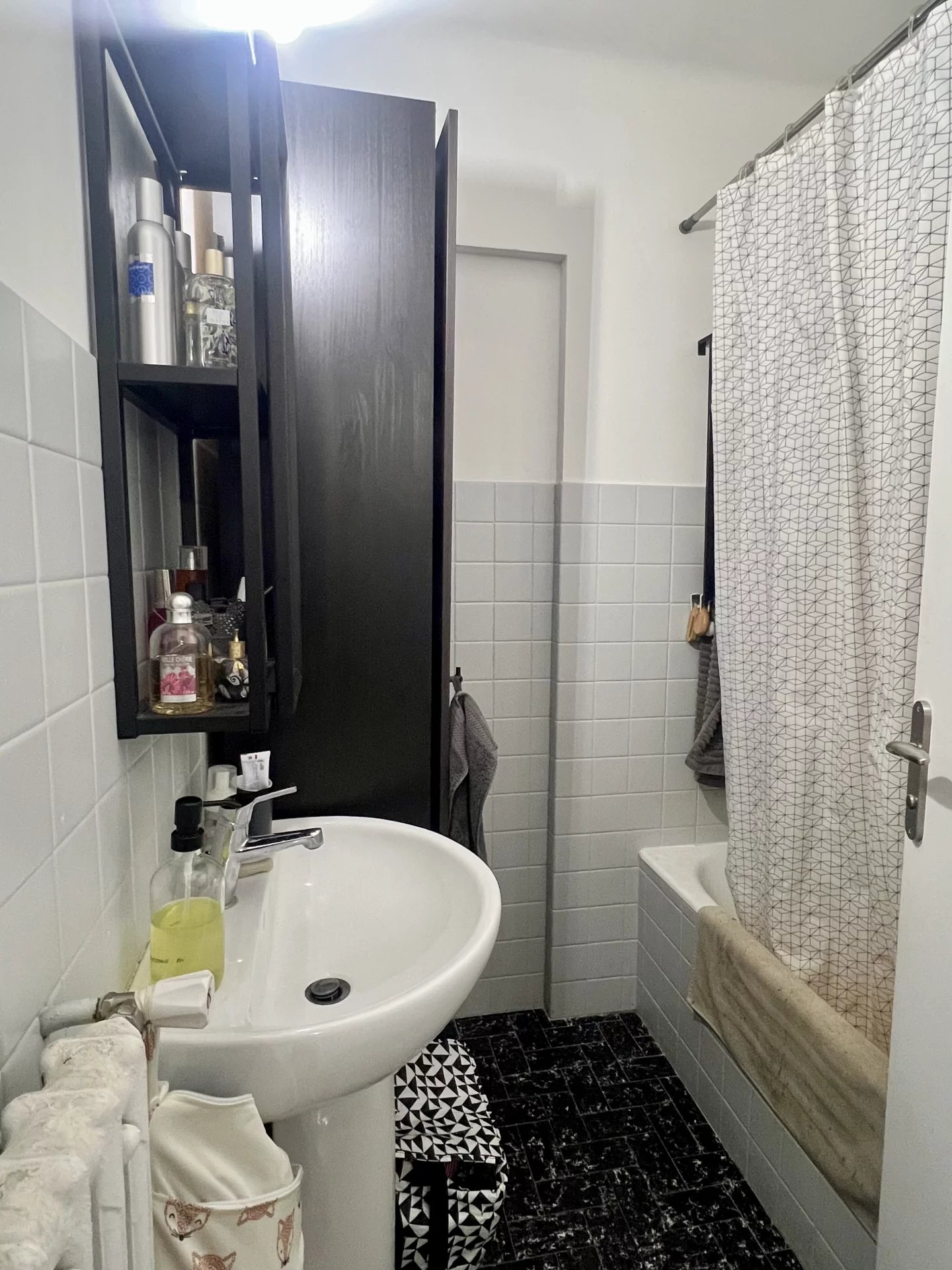 Situé au 2ème étage avec ascenseur d'un immeuble sécurisé et bien entretenu, grand appartement 2 pièces de 55m² loué vide, composé de : une entrée avec placard, une pièce à vivre ouverte sur belle terrasse filante, une cuisine indépendante aménagée, une chambre, une salle de bain et un WC indépendant.