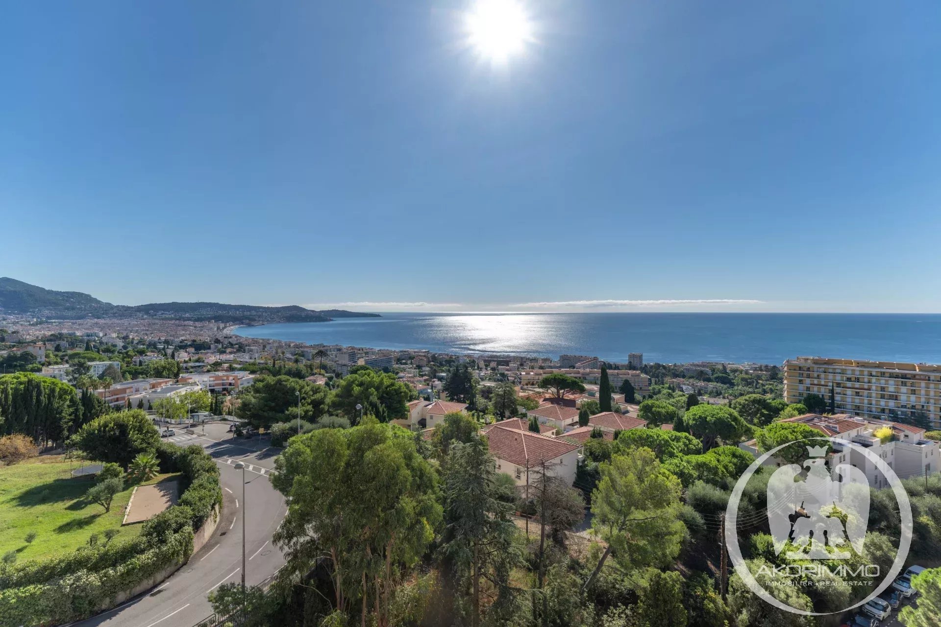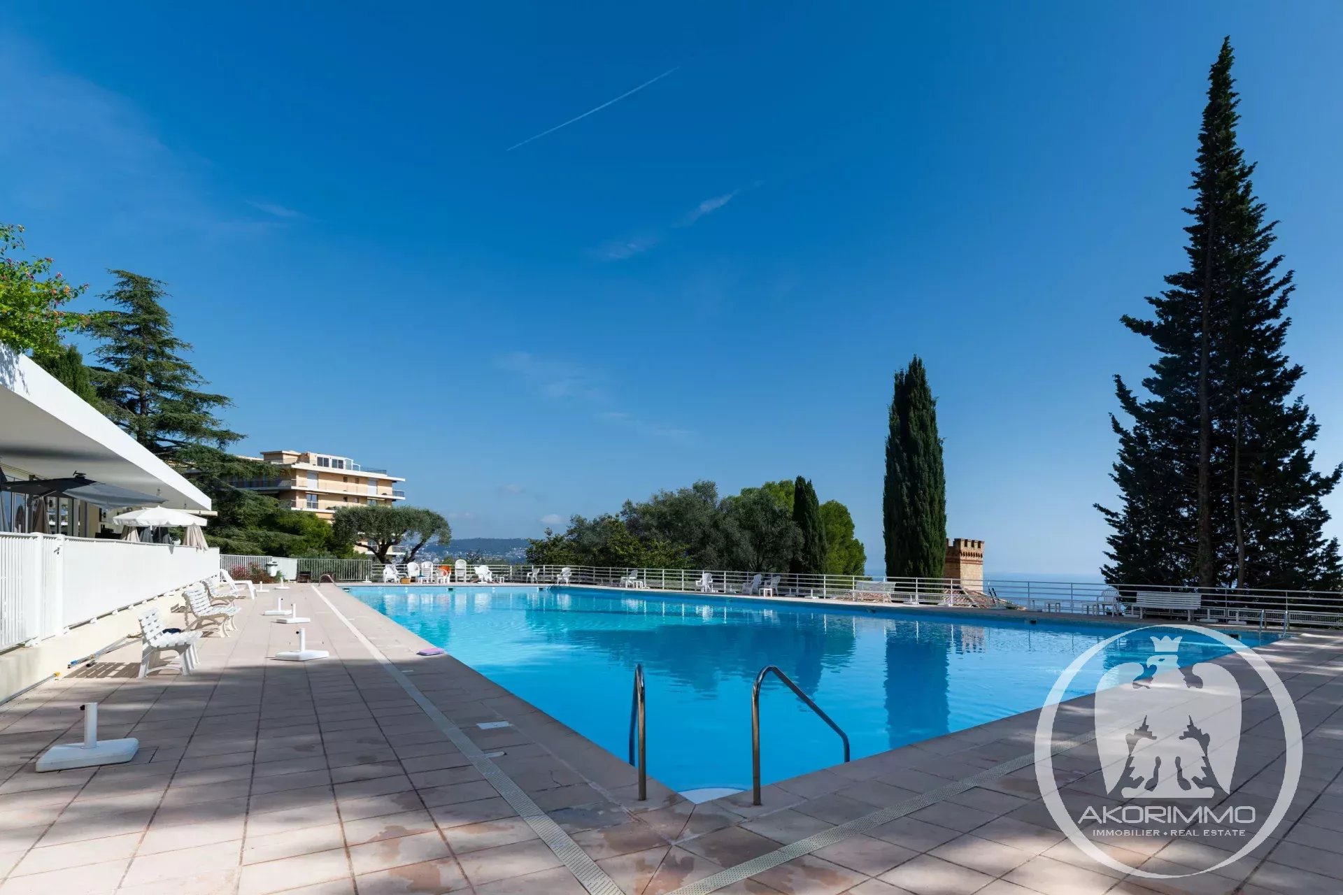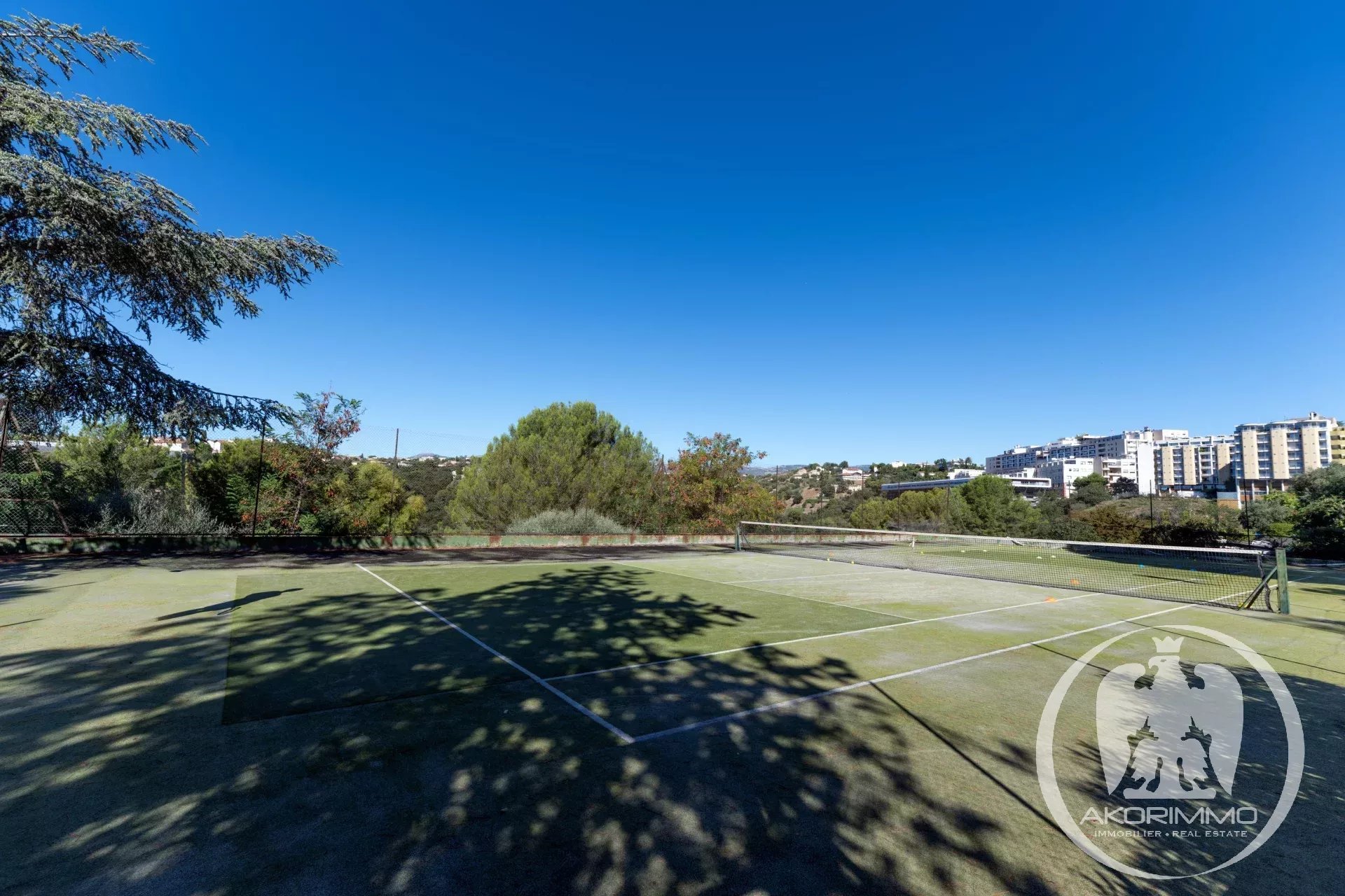 Vous pourrez profiter de moments de détente sur la terrasse offrant une vue panoramique sur la ville et la mer. Les résidents bénéficient d'une piscine privée,de tennis, et de stationnement collectifs au pied de l'immeuble.