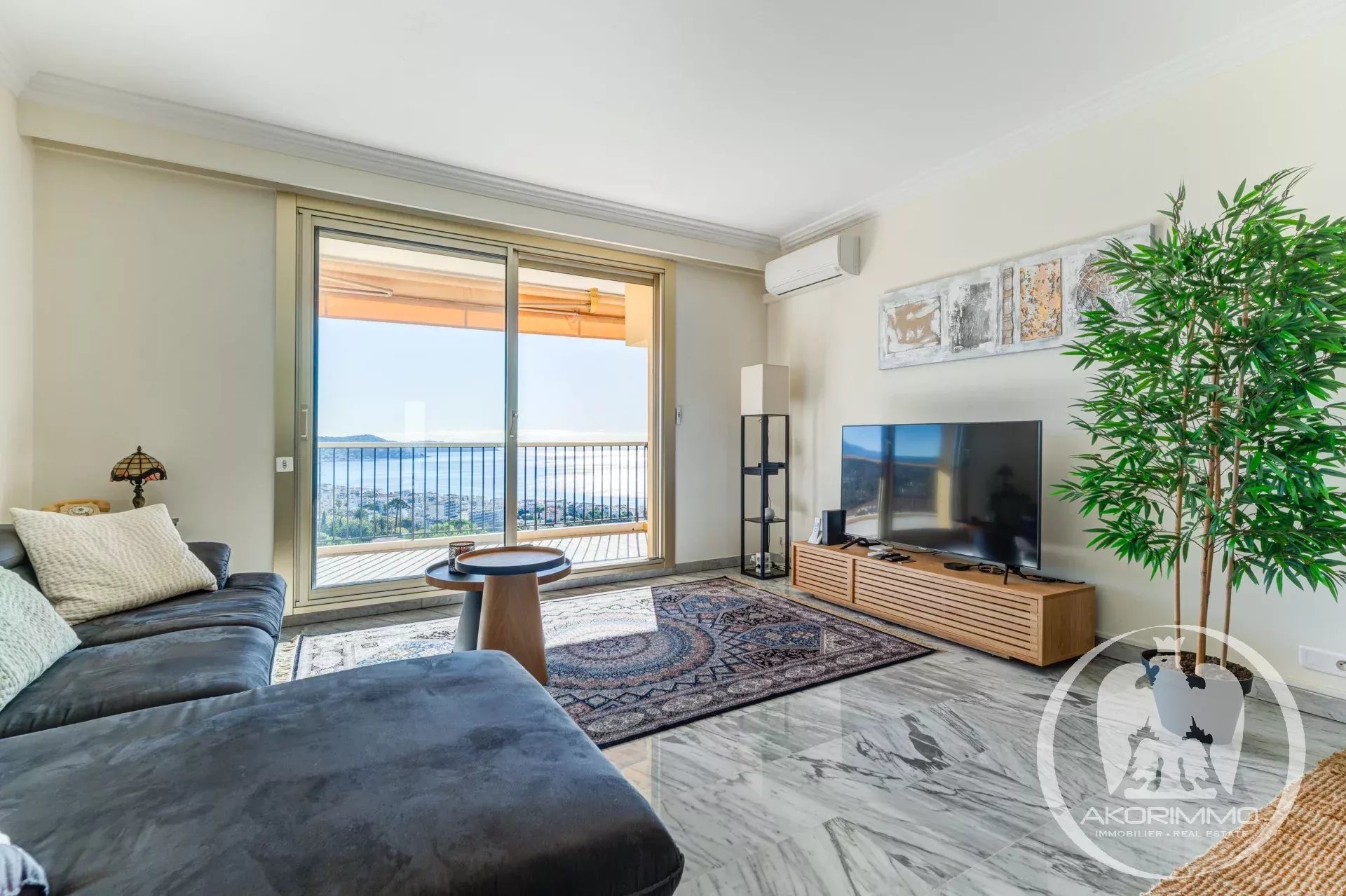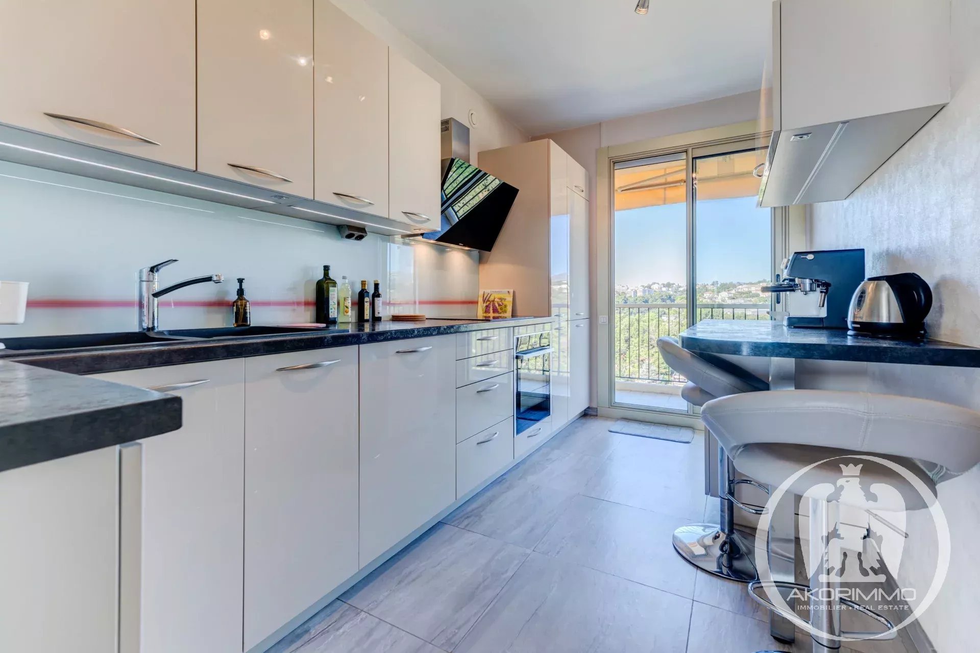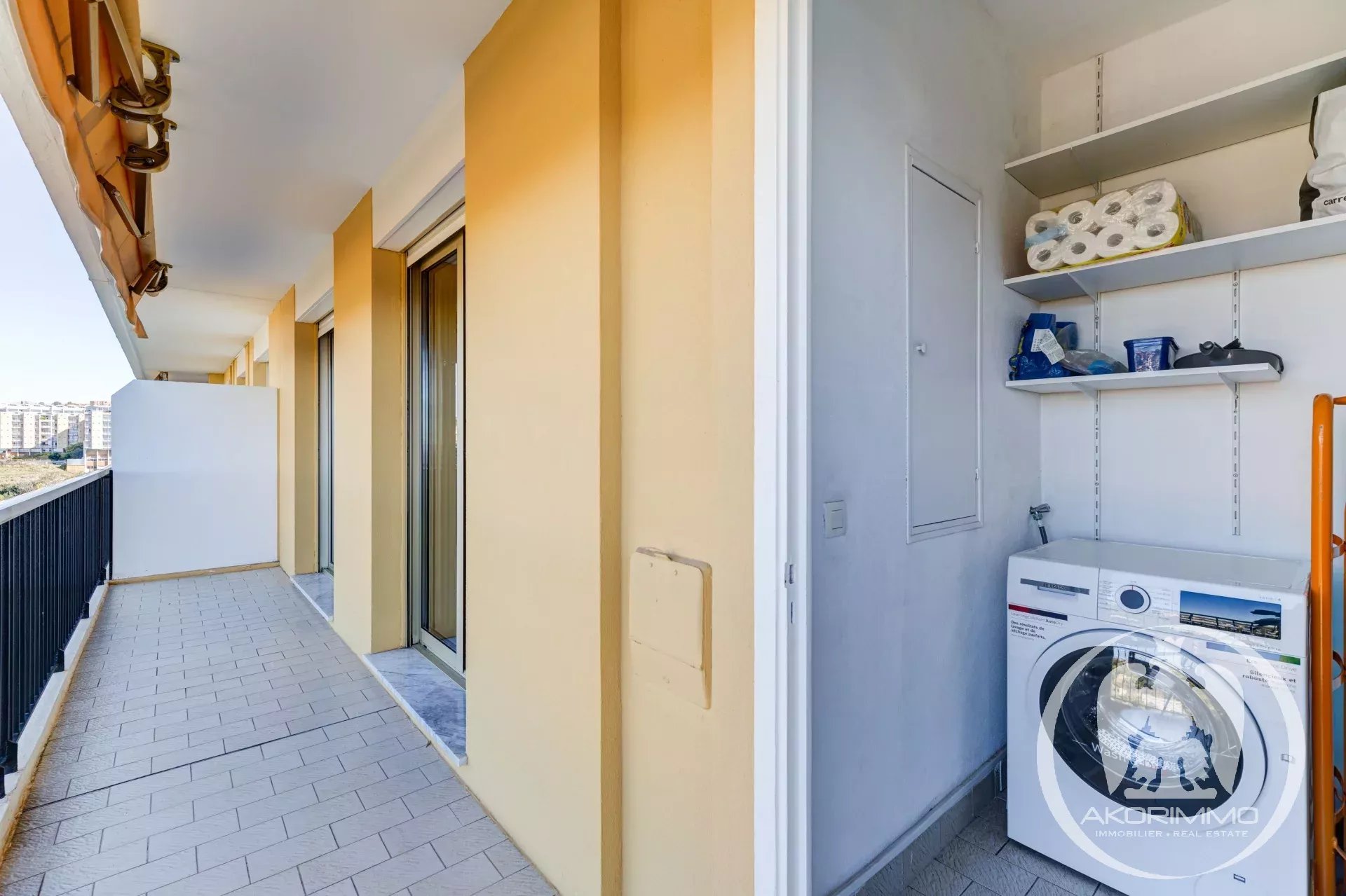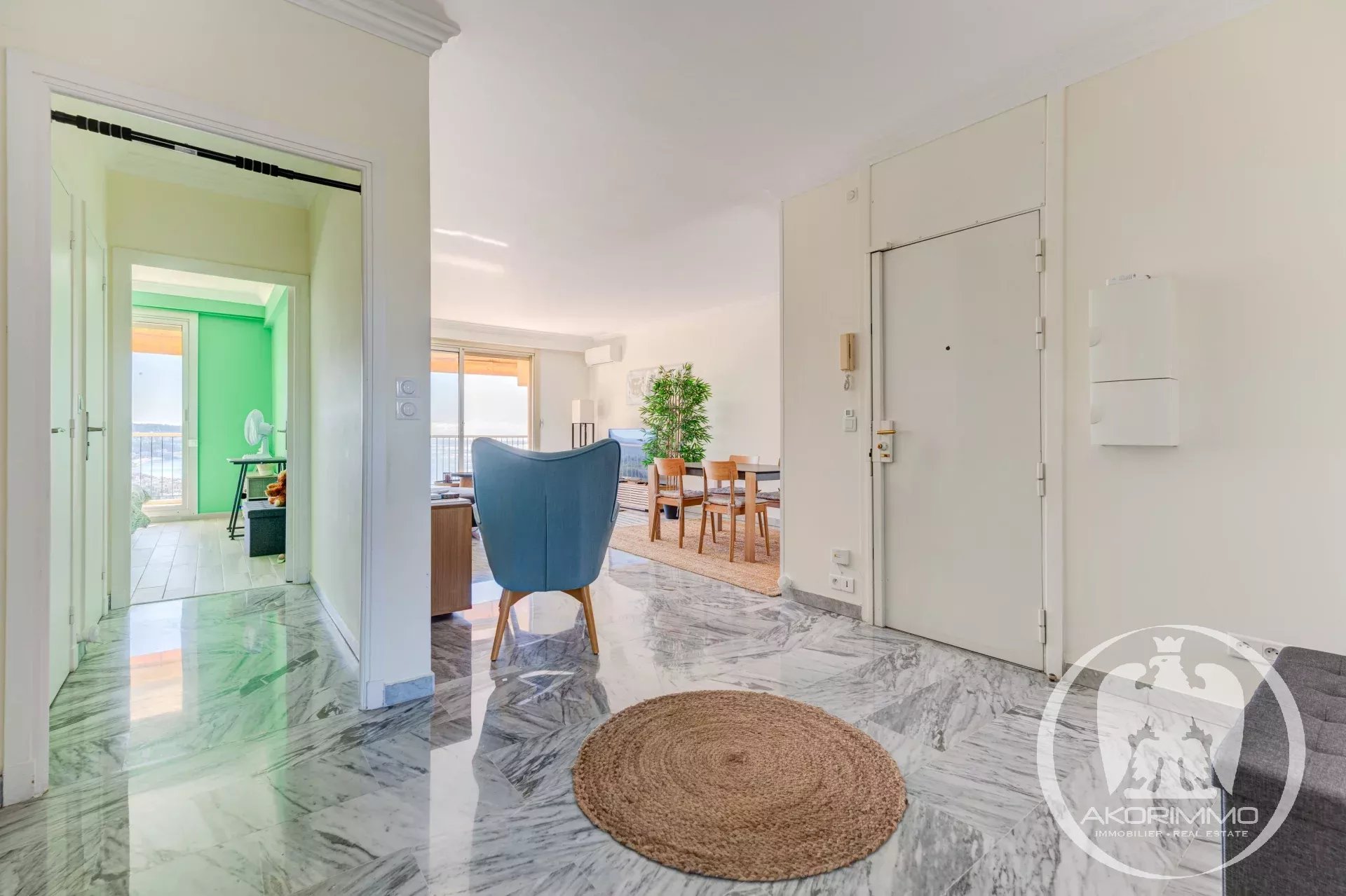 Vous pourrez profiter de moments de détente sur la terrasse offrant une vue panoramique sur la ville et la mer. Les résidents bénéficient d'une piscine privée,de tennis, et de stationnement collectifs au pied de l'immeuble.