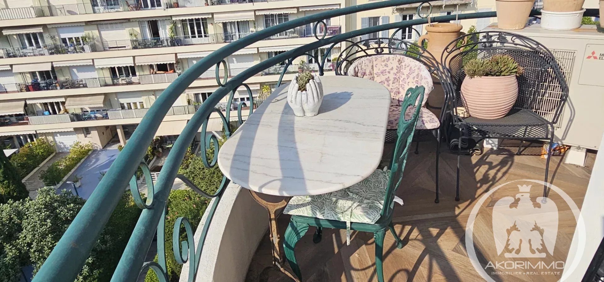 L’appartement séduit par un vaste séjour baigné de lumière, exposé sud-ouest, profitant du plein soleil tout au long de la journée. Une belle ouverture sur un balcon permet d’installer aisément une table et deux chaises, idéal pour profiter du climat niçois et des couchers de soleil.