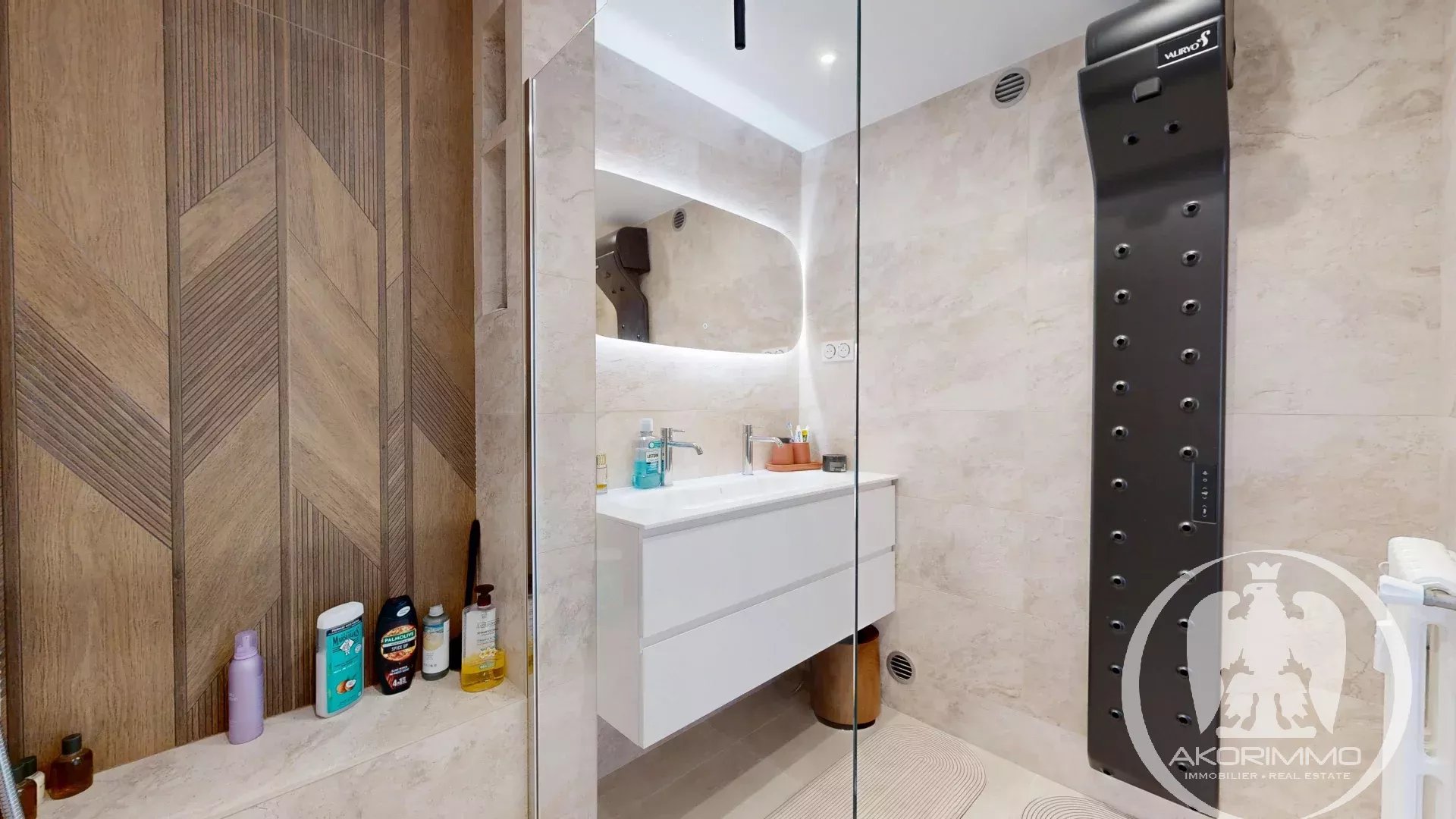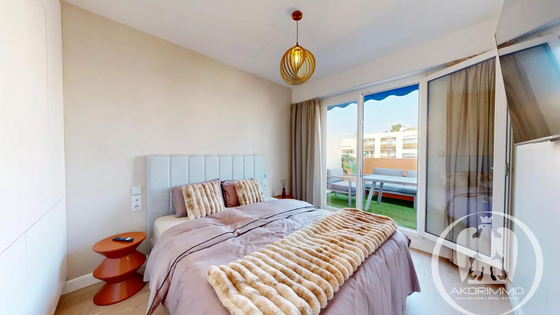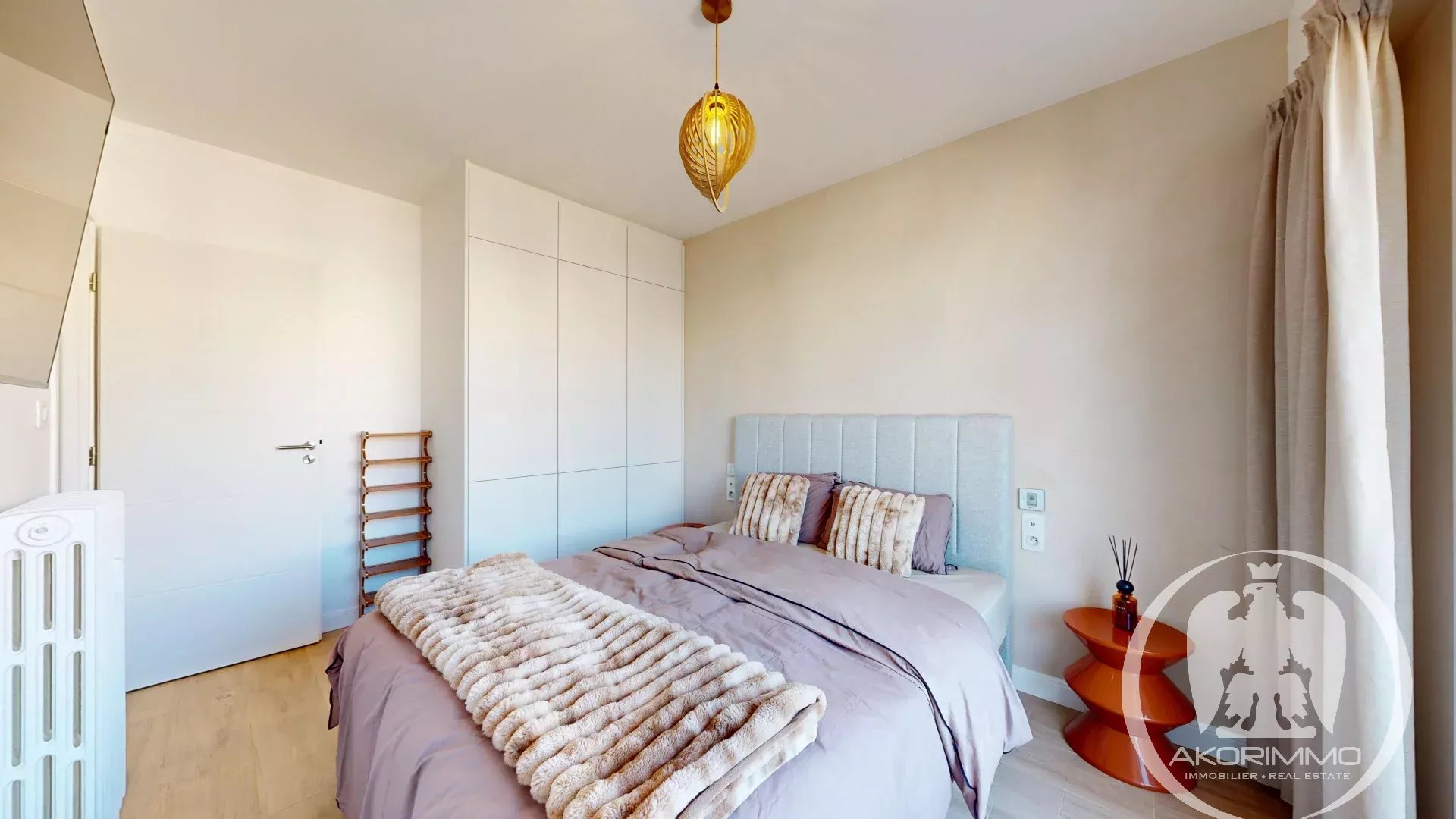 Composé d'une entrée, beau séjour avec une cuisine américaine aménagée et équipée donnant sur une grande terrasse, 2 belles chambres, nombreux placards et rangements, salle d'eau et WC indépendant.