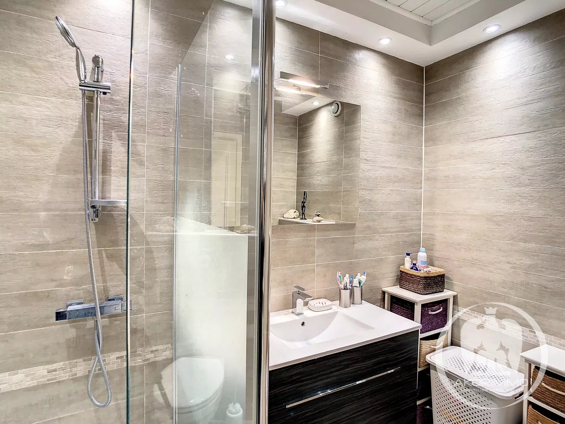 Il est parfaitement disposé, le séjour donnant sur la terrasse exposition Ouest, cuisine indépendante aménagée, 2 belles chambres avec placards, balcon filant Est de 22m2 ouvert sur toutes les pièces, 1 salle de douche/wc et un wc indépendant avec son lave-main.
