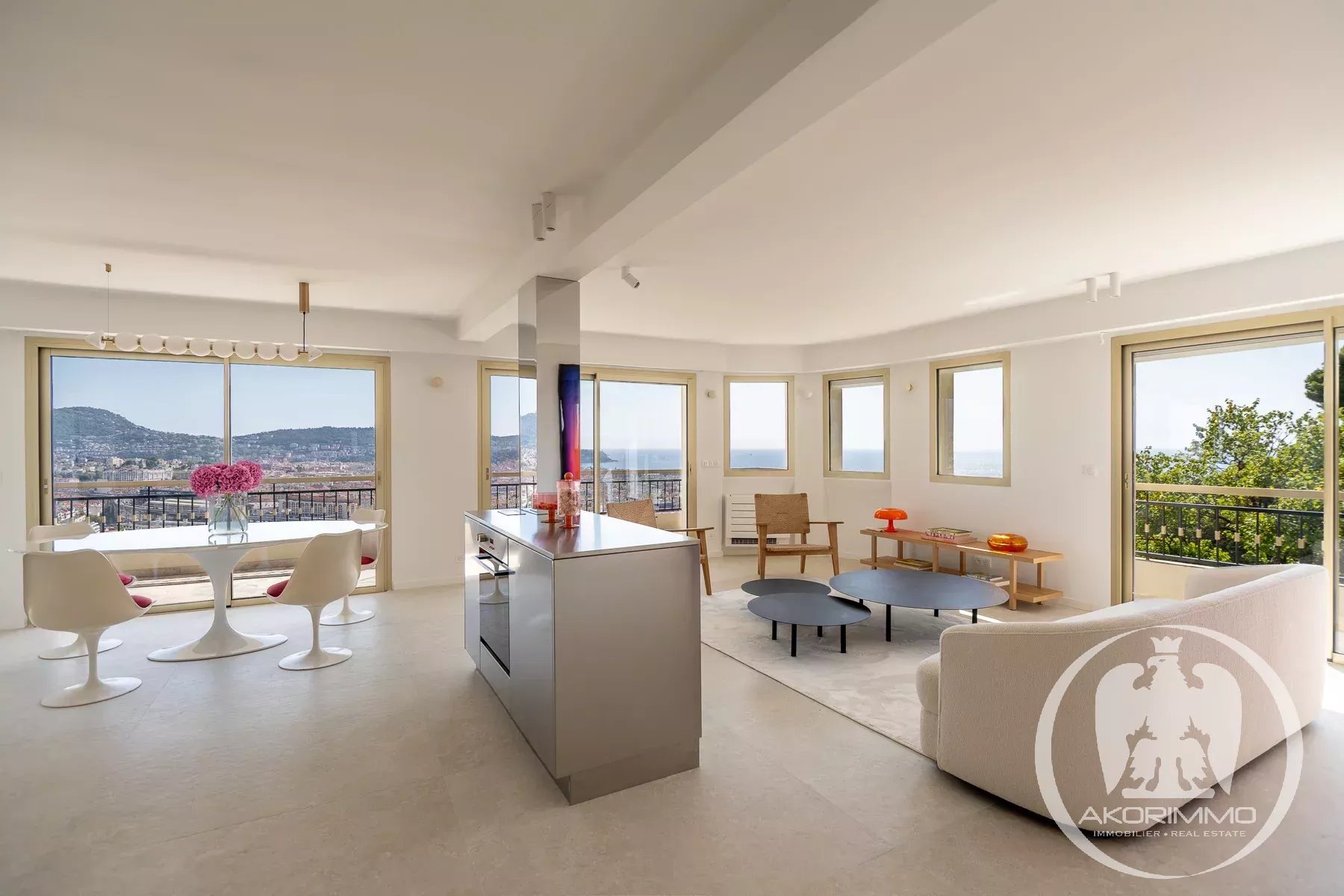 Vue panoramique mer et Ville pour ce superbe 4 pièces de 102 m² et sa spacieuse terrasse. Ce Bien d'exception a bénéficié d'une rénovation haut de gamme lui conférant raffinement luminosité et modernité.