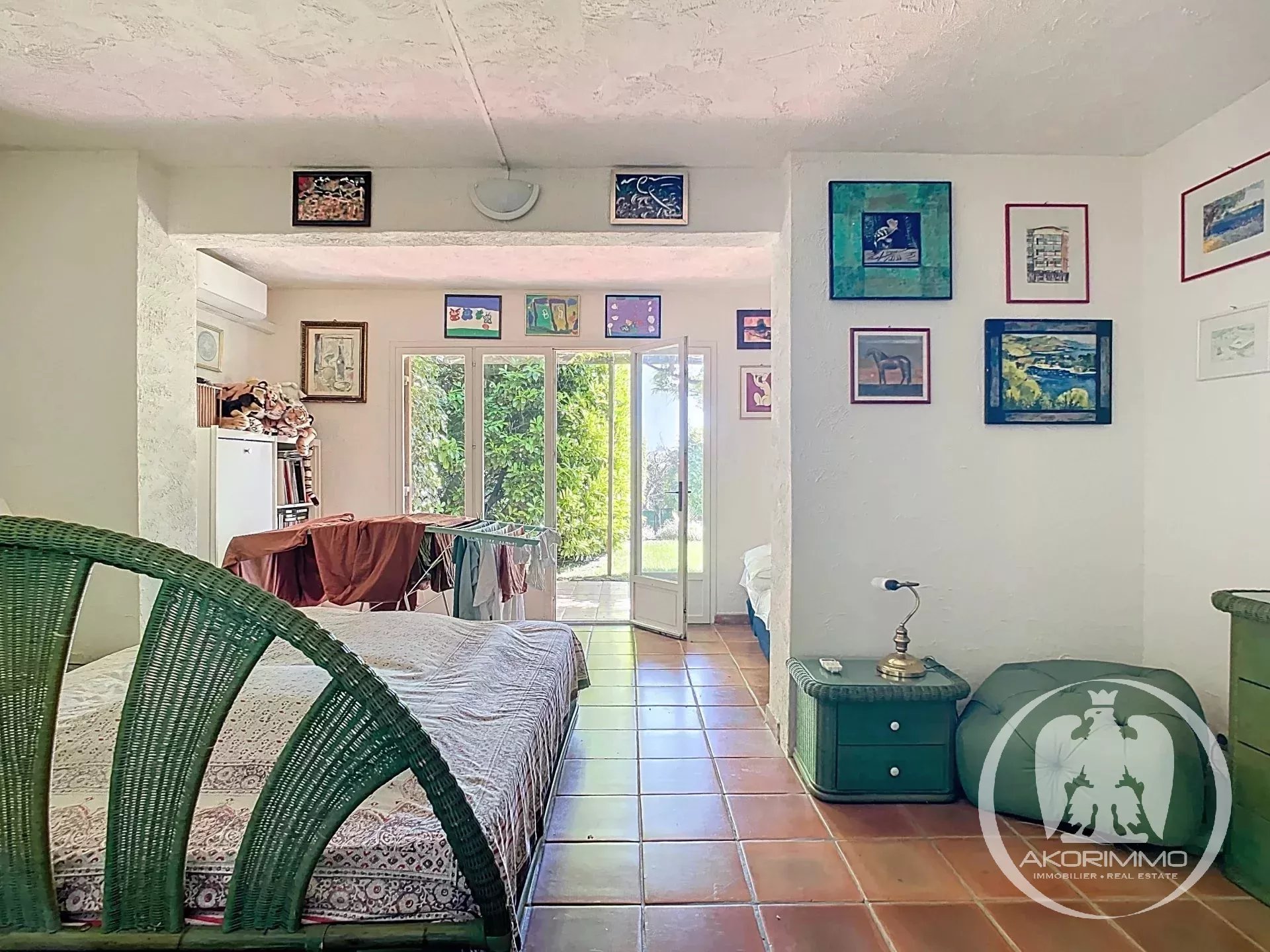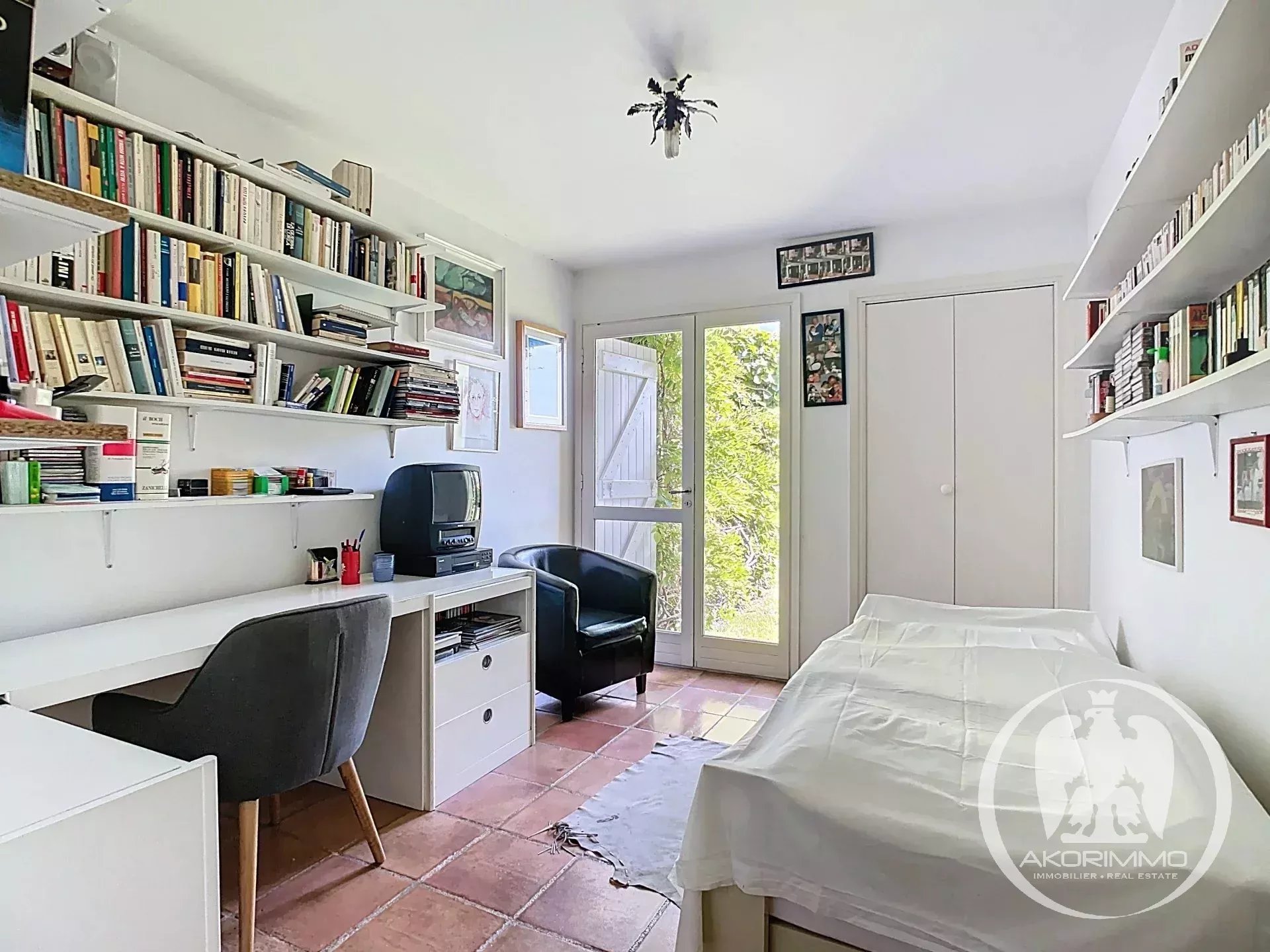 Son espace de vie s’ouvre sur une terrasse intimiste, idéale pour profiter de la vue dégagée. La cuisine indépendante, le bureau en mezzanine et les pièces d’eau complètent ce premier niveau. En rez-de-jardin, trois chambres avec accès direct au jardin arboré de 406 m² offrent confort et tranquillité, avec salle de bains, salle d’eau et dressing.