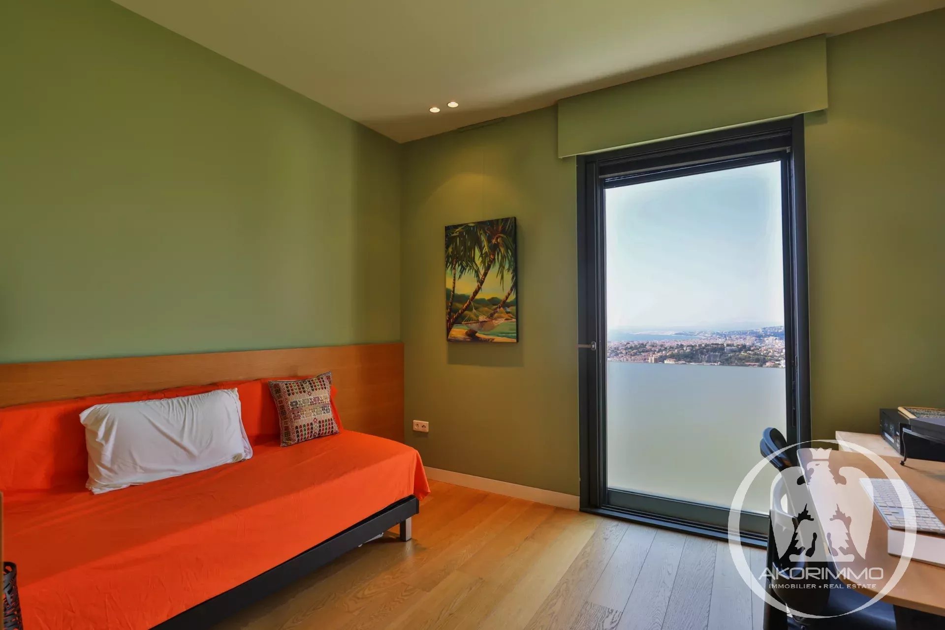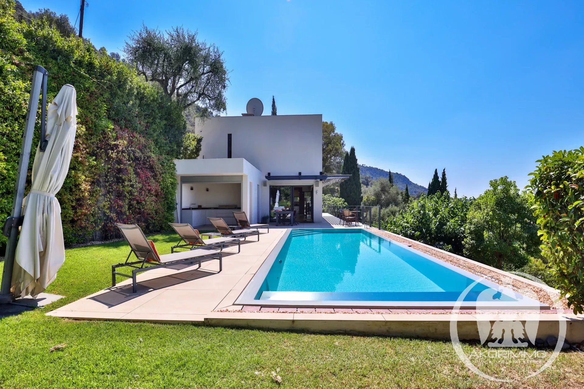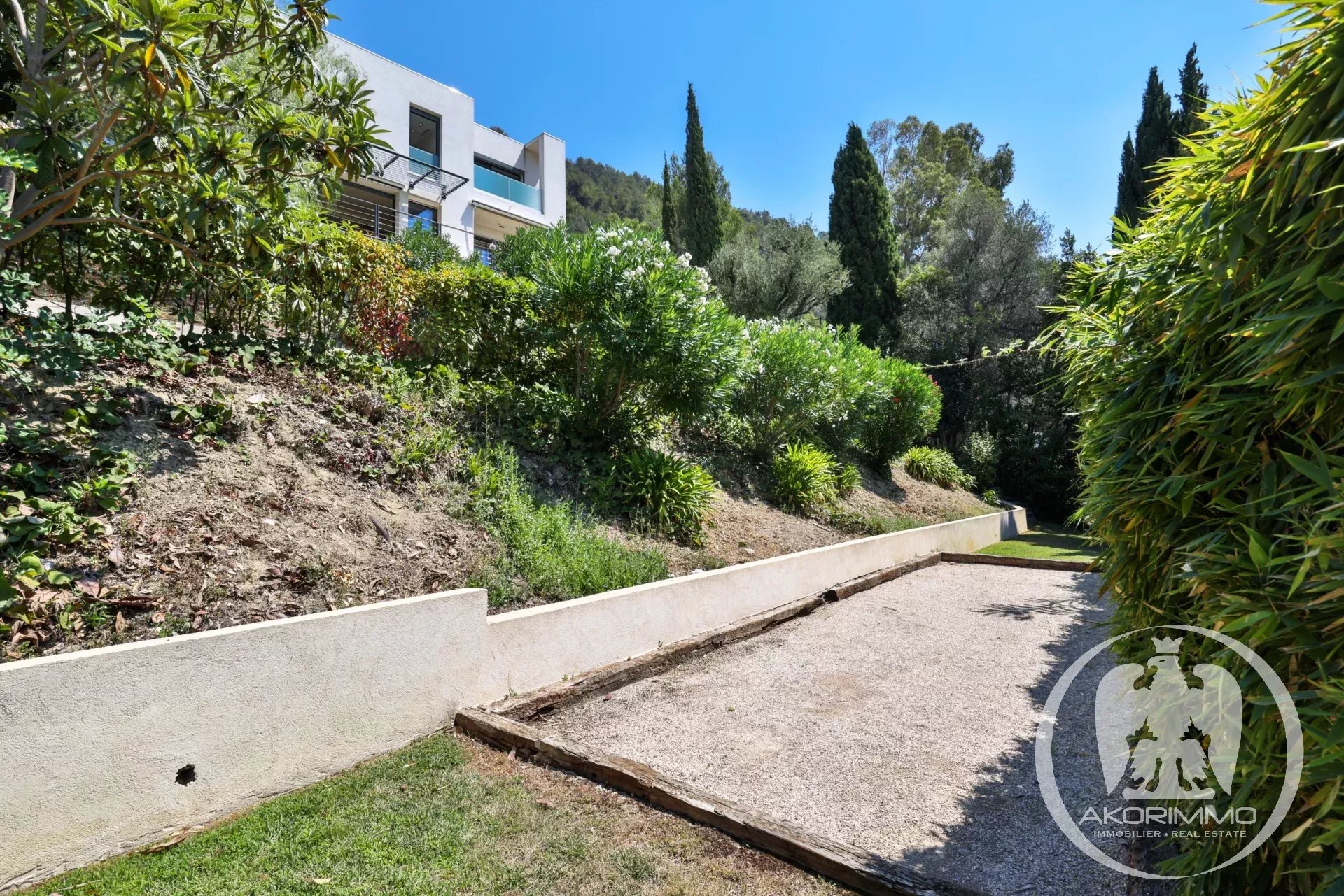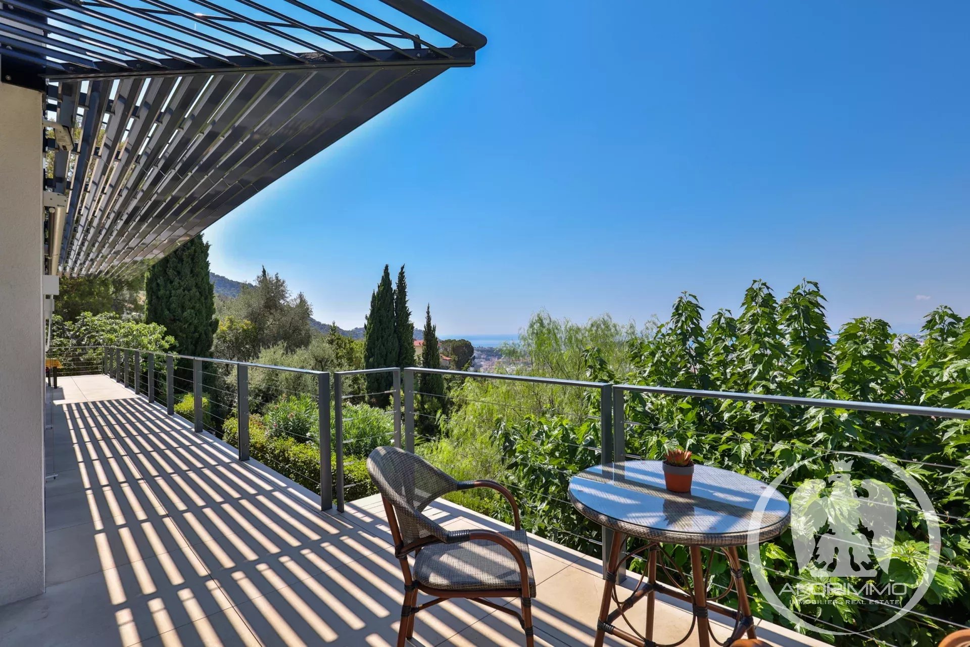 NICE Grande Corniche/Vinaigrier : Edifiée sur un terrain arboré de 1700 m², superbe villa rénovée aux prestations luxueuses. Cette propriété jouit d'une très belle vue panoramique sur la baie des anges et bénéficie d'une piscine chauffée à débordement avec poolhouse et d'un boulodrome.