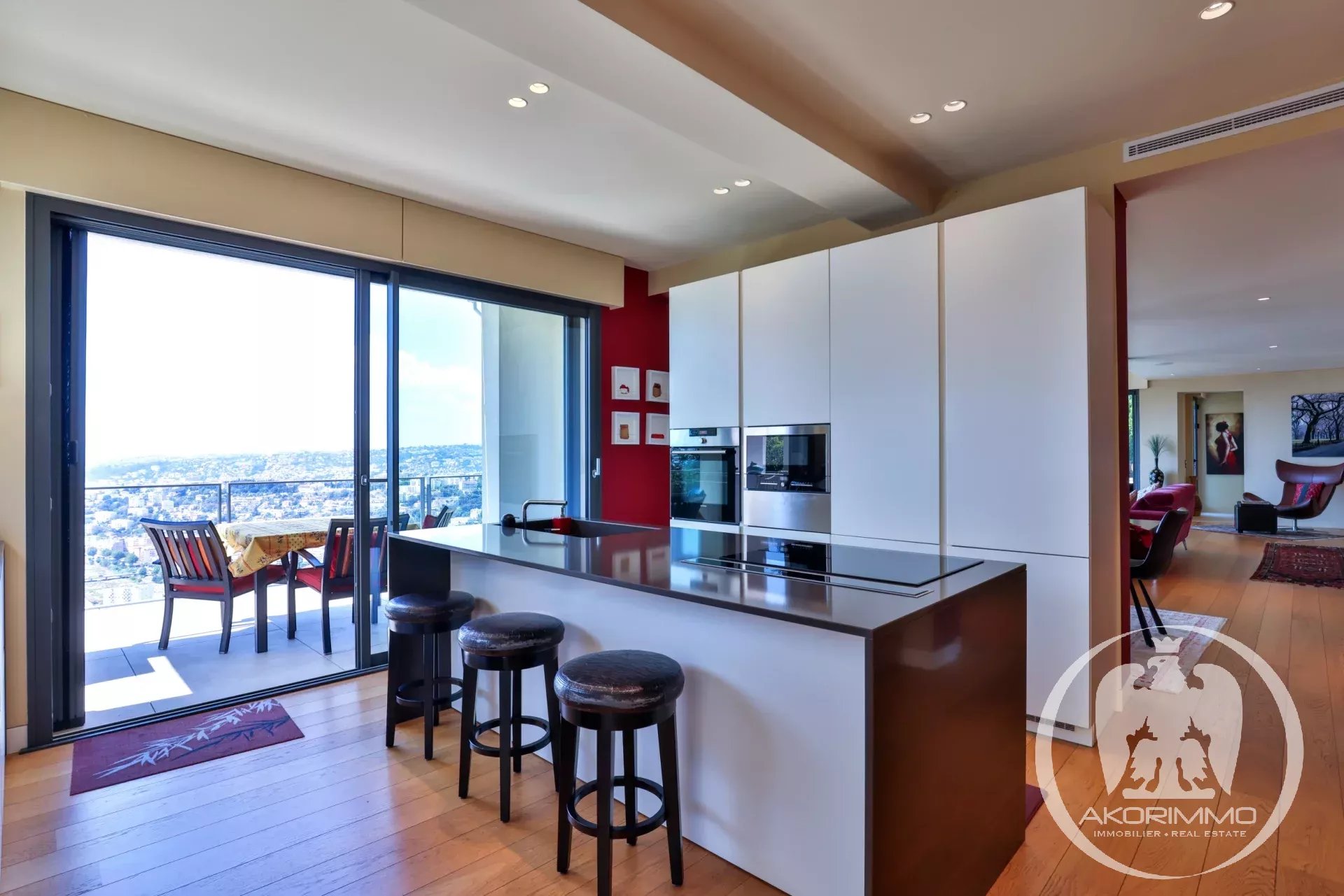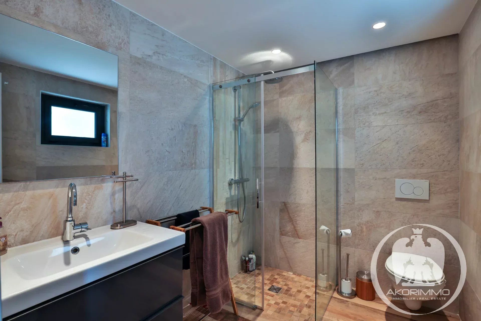 Elle se compose d'un vaste séjour lumineux avec sa cuisine ouverte équipée et aménagée, quatre chambres et quatre salles de bains ainsi qu'un appartement d'invités indépendant de type 2 pièces.