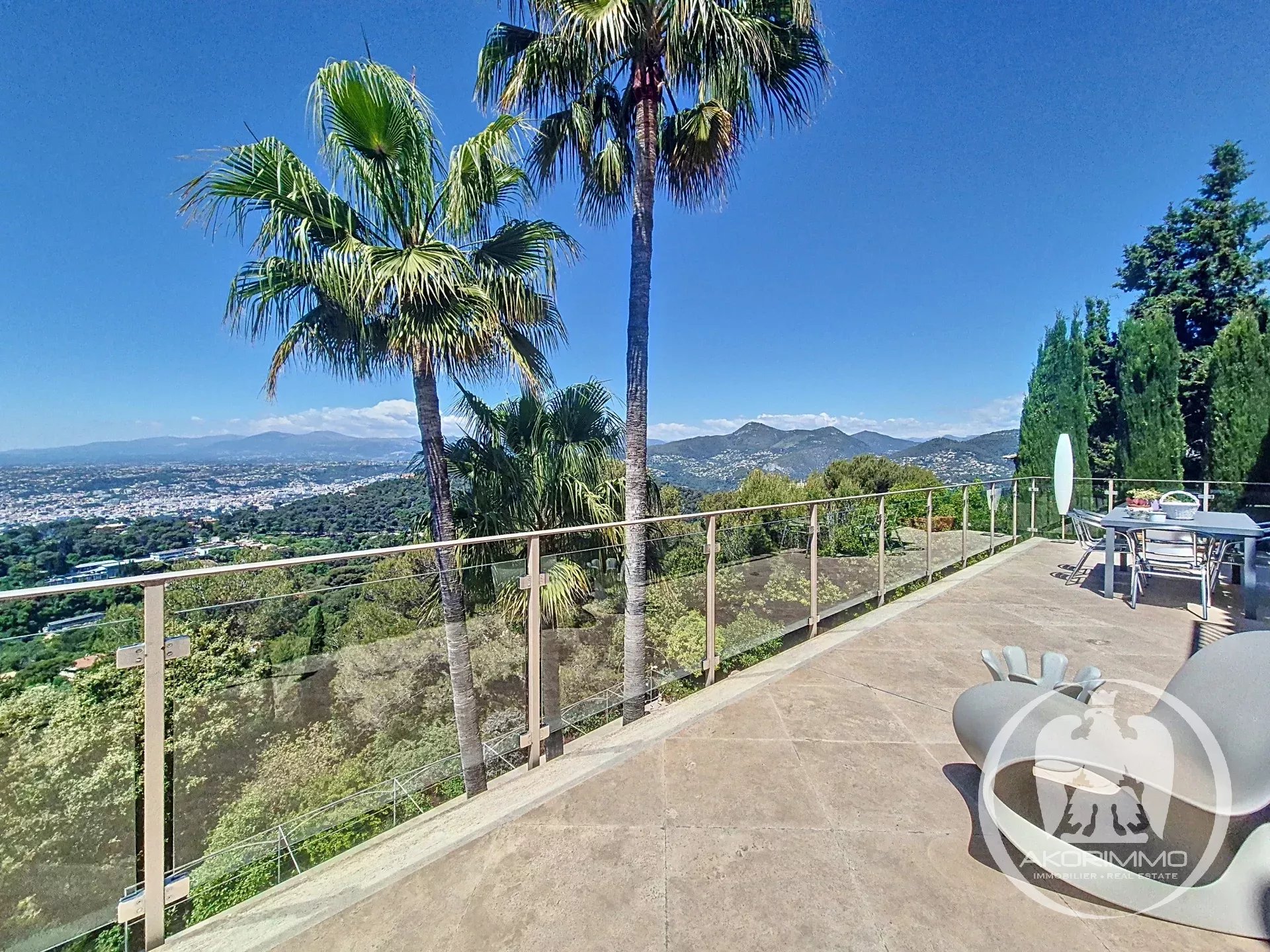 A quelques minutes de la ville et au CALME absolu, dans un cadre VERDOYANT et en position la plus DOMINANTE, venez découvrir cette magnifique villa provençale sur 3 niveaux avec ASCENSEUR, exposée SUD/OUEST avec la VUE la plus SPECTACULAIRE sur Nice et ses environs.