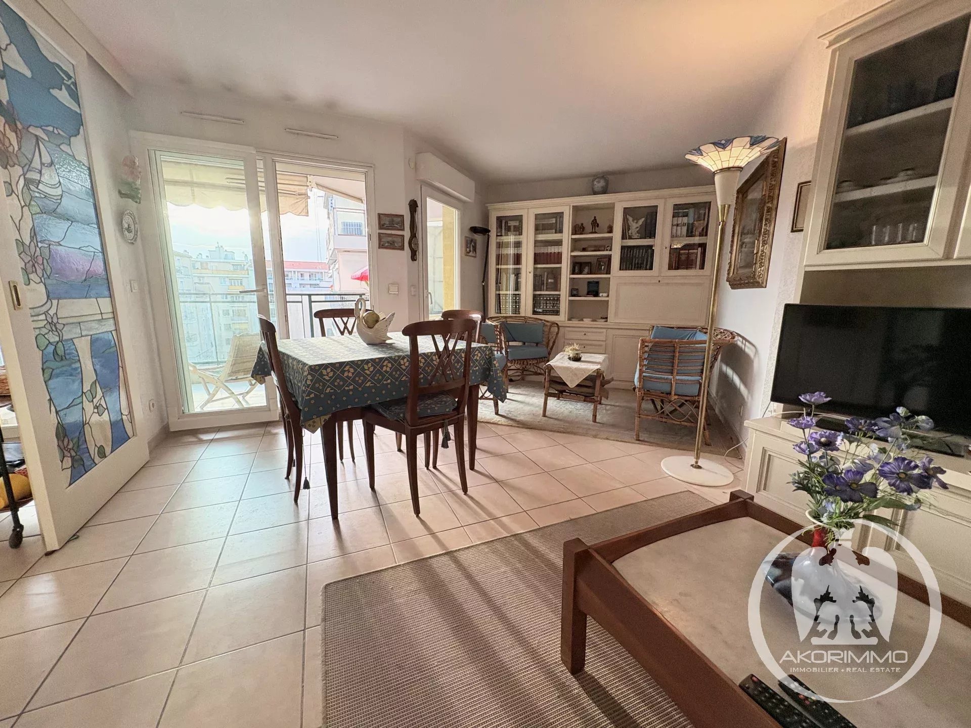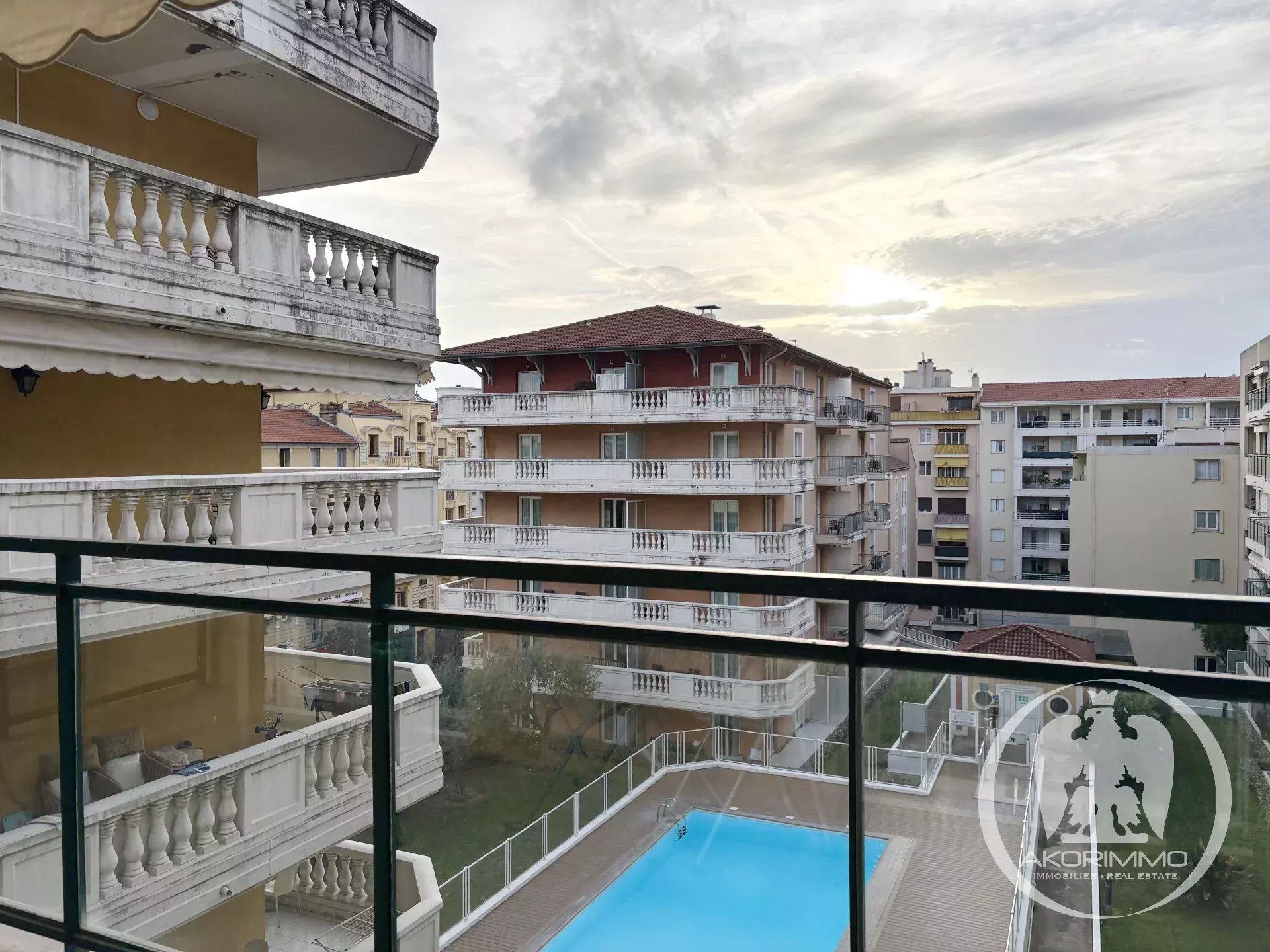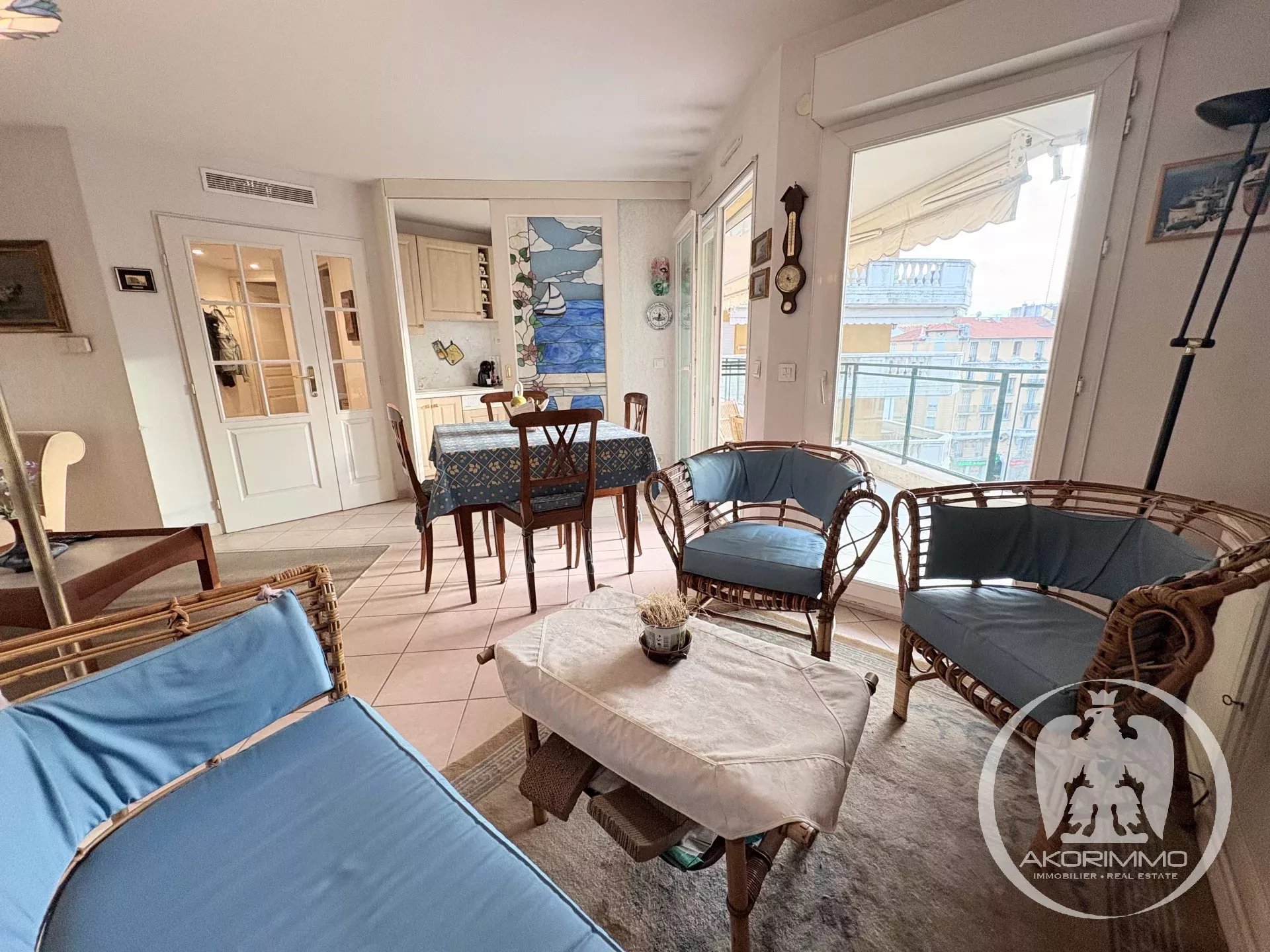 À proximité immédiate de la Promenade des Anglais et de sa plage de galets, découvrez ce bel appartement situé au 5ᵉ étage d’une résidence de standing avec piscine.