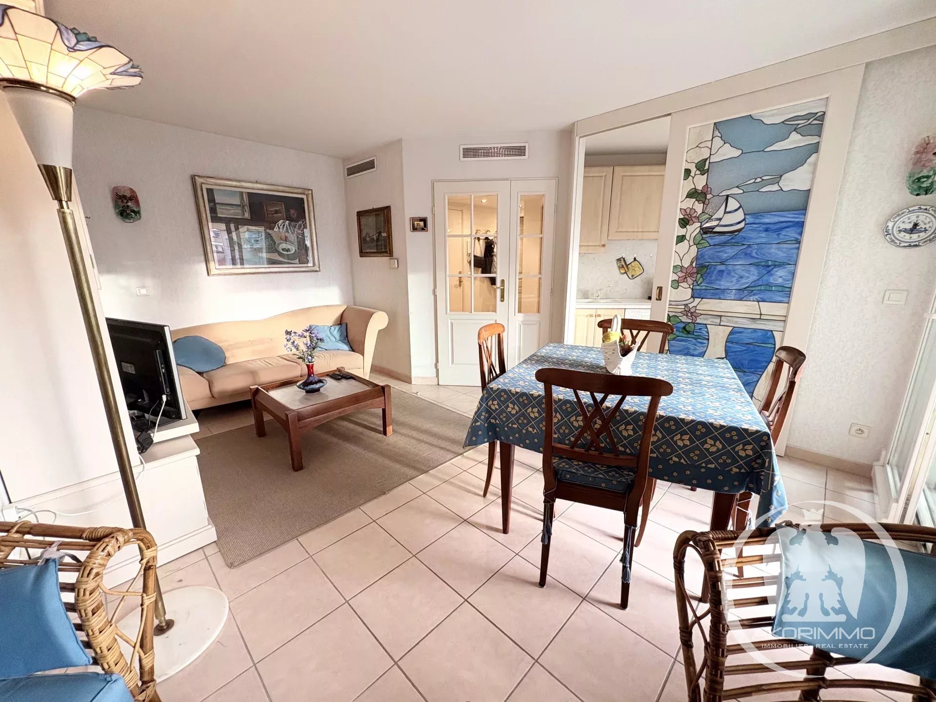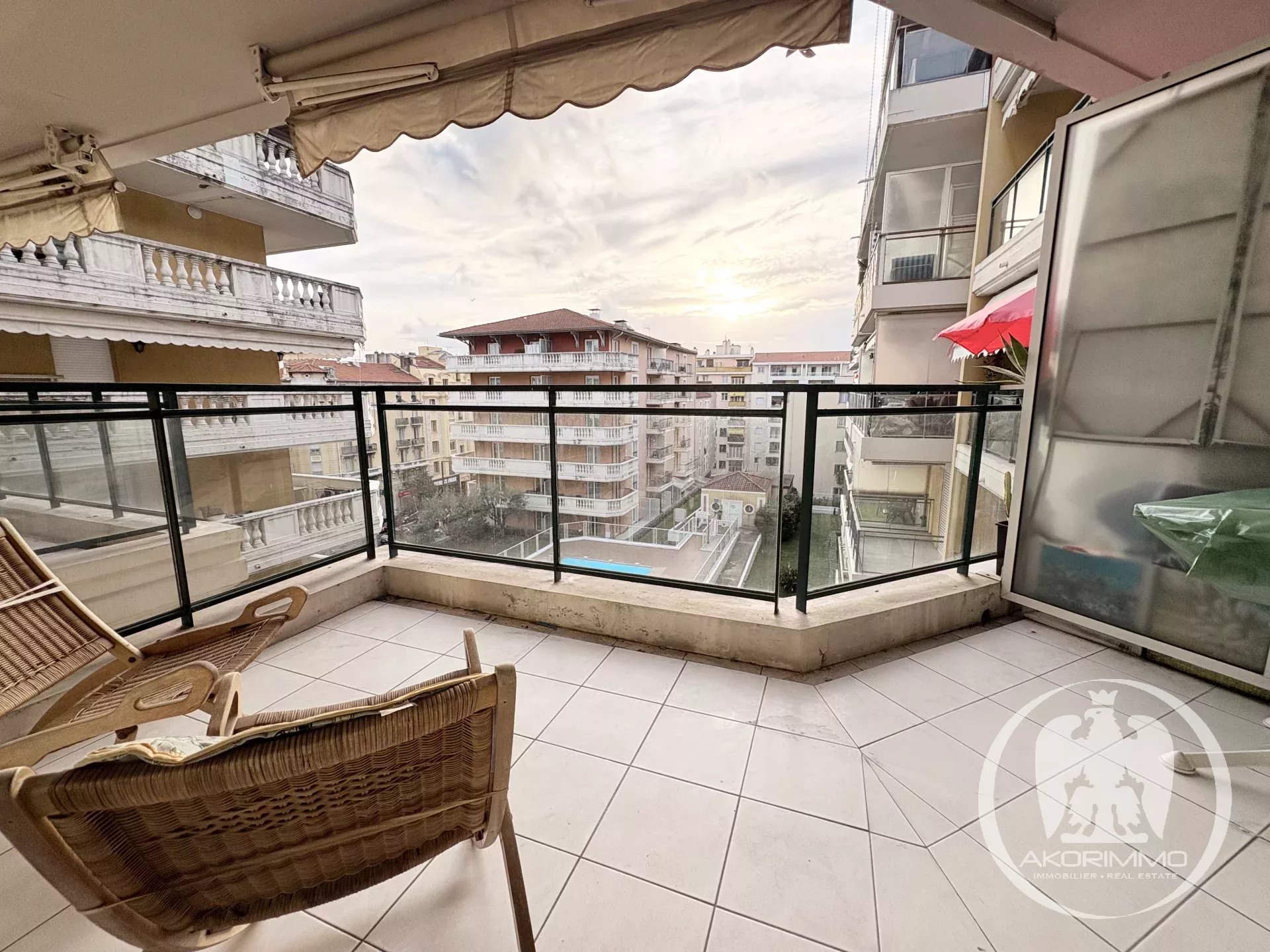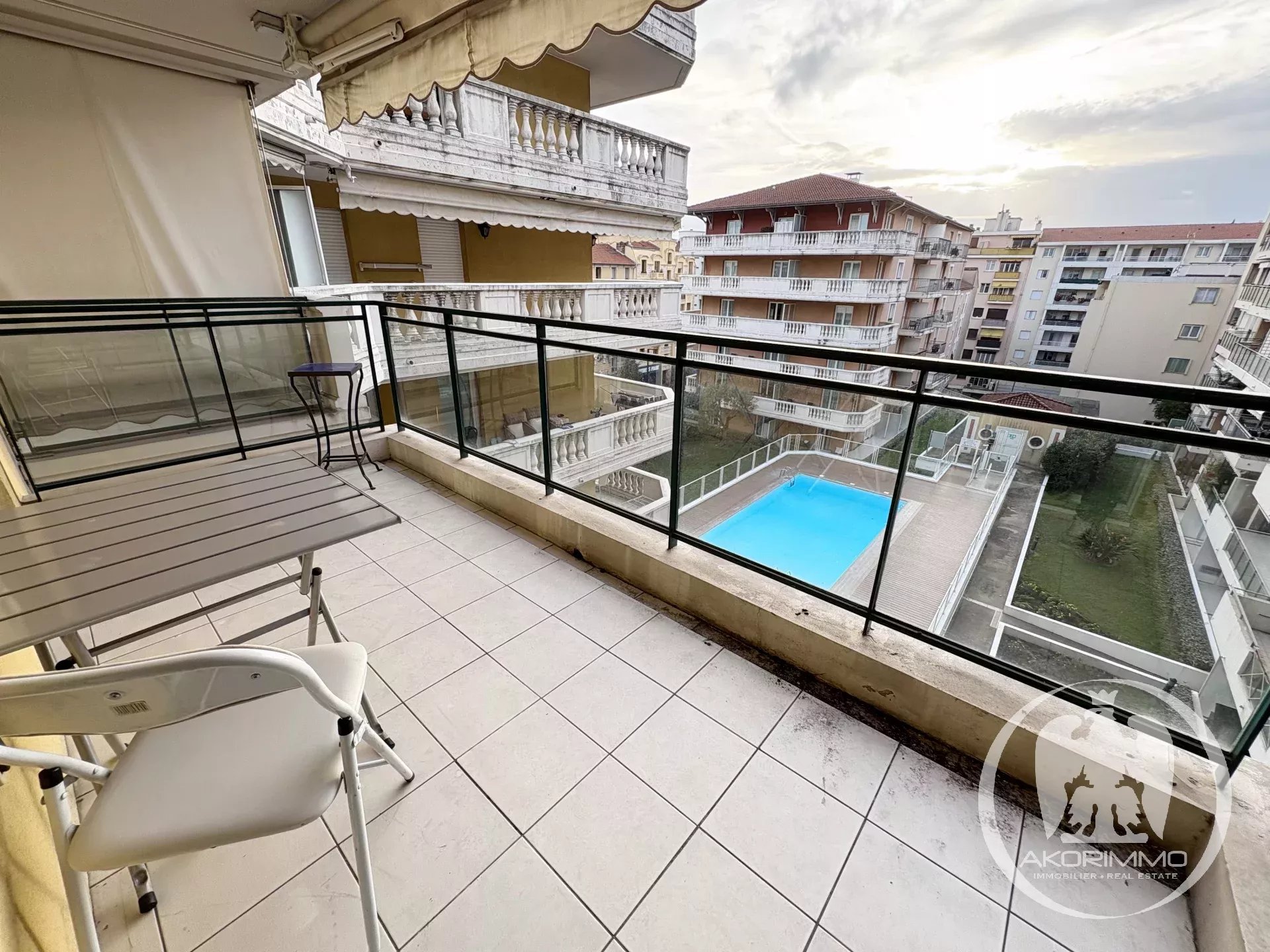 À proximité immédiate de la Promenade des Anglais et de sa plage de galets, découvrez ce bel appartement situé au 5ᵉ étage d’une résidence de standing avec piscine.