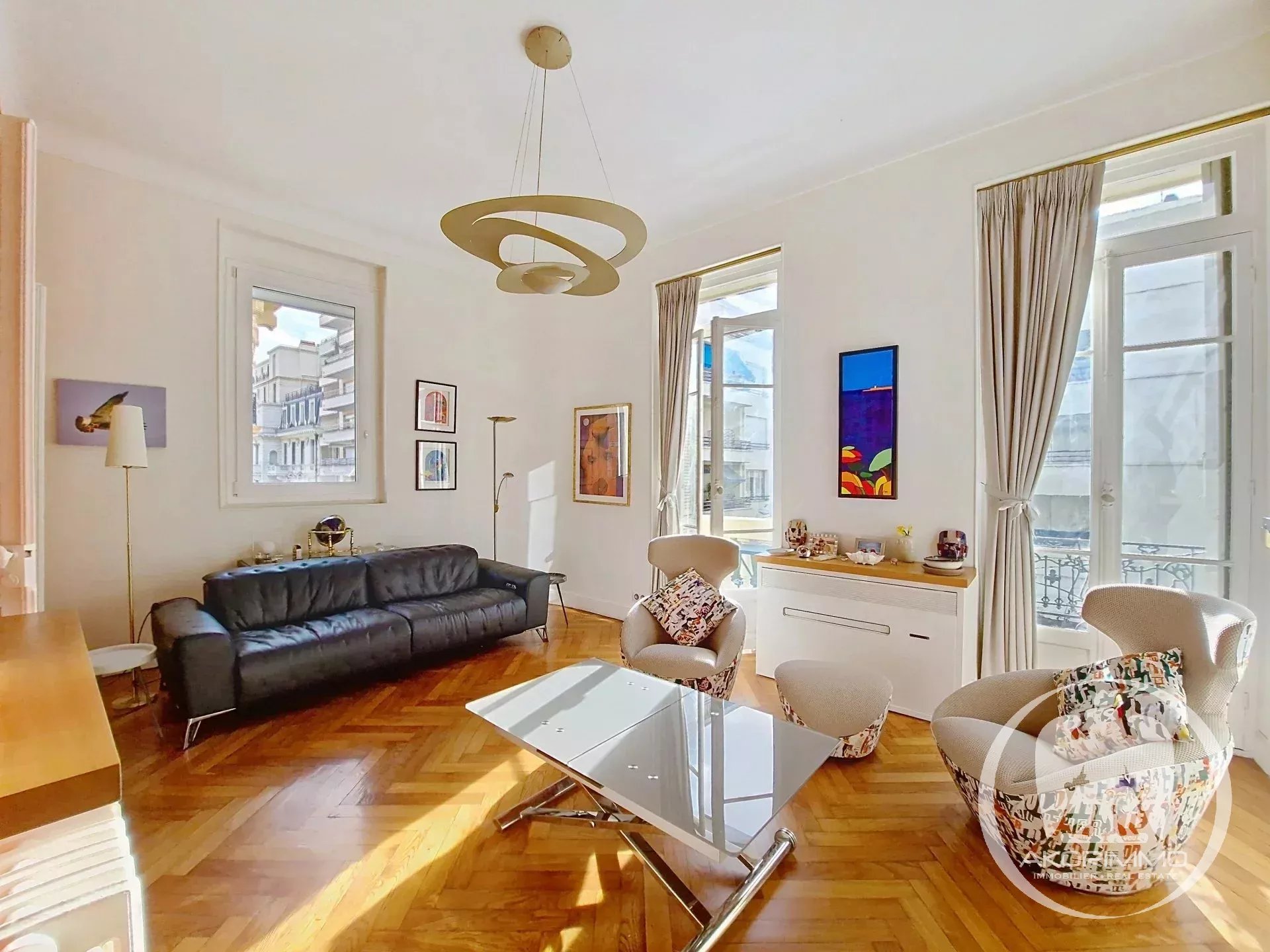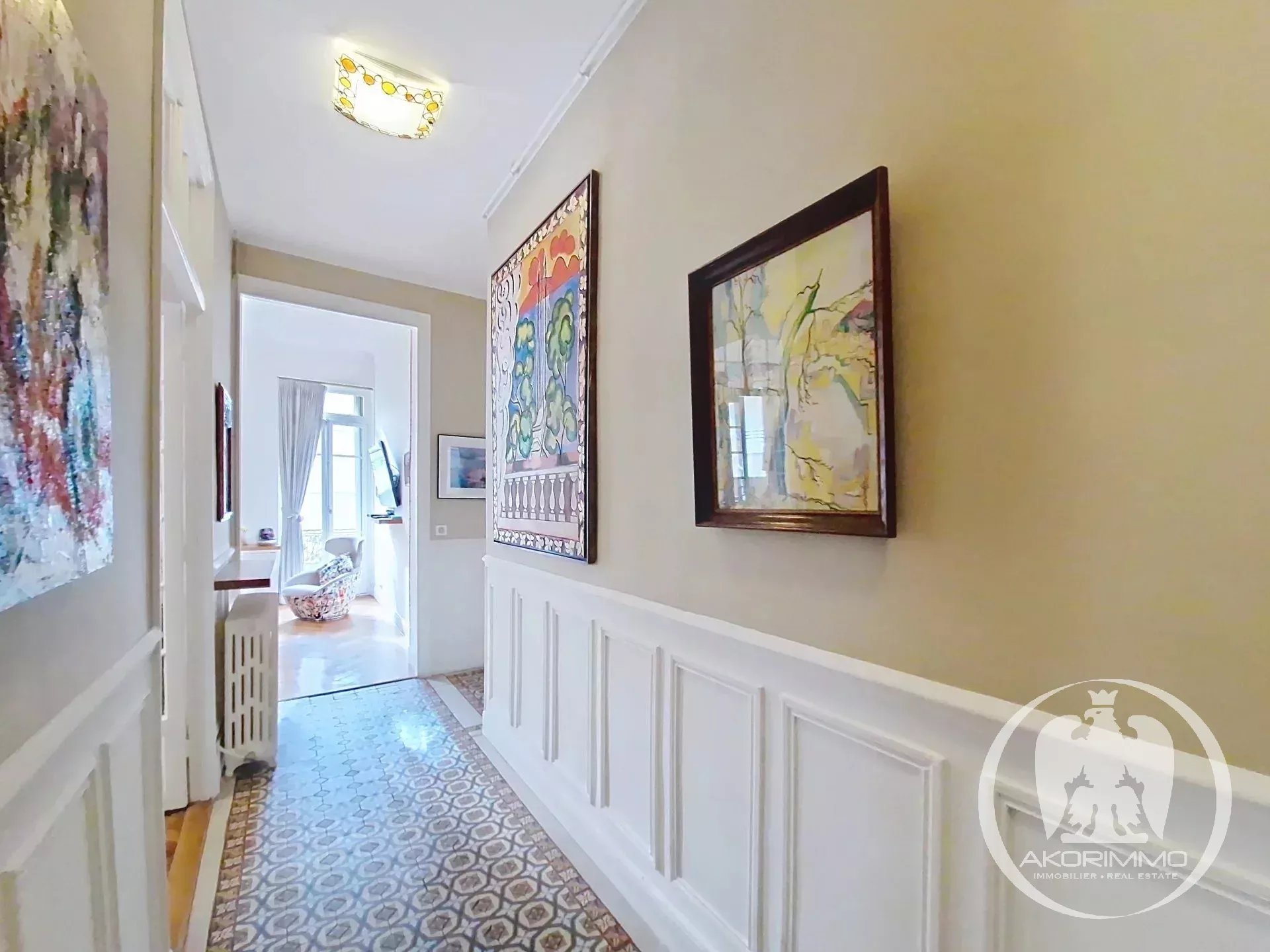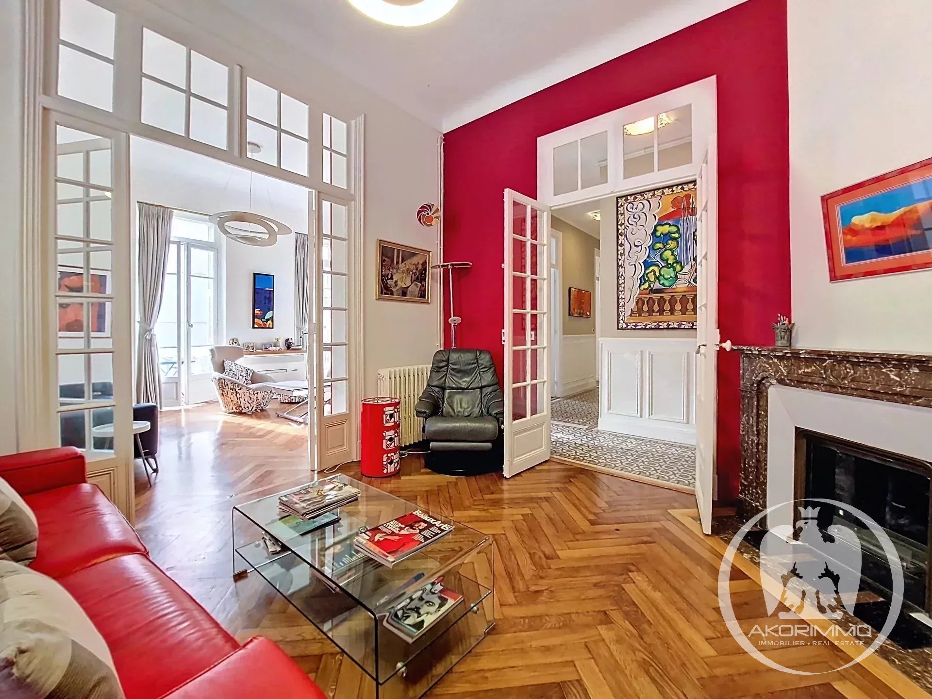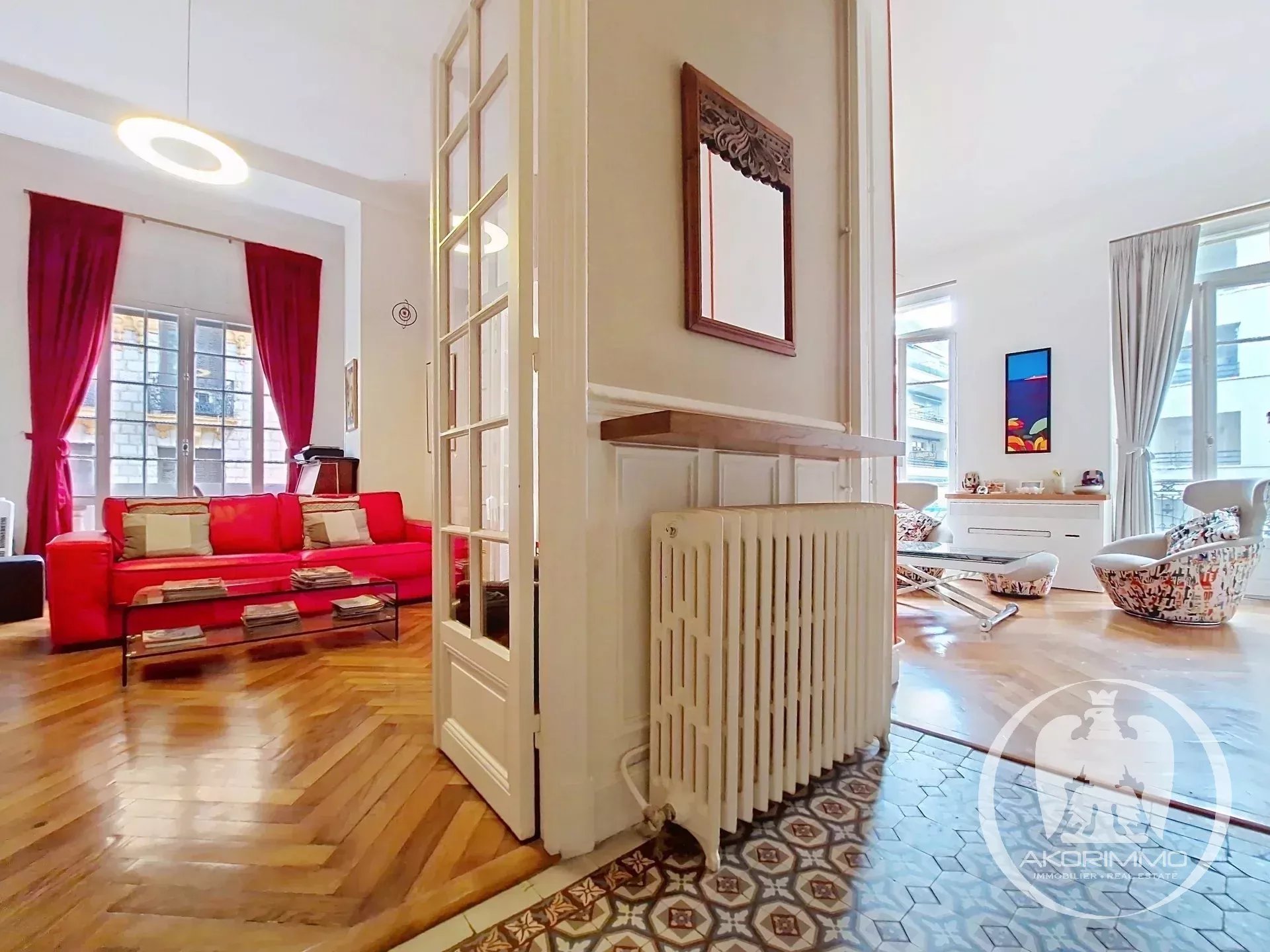 APPARTEMENT 4-5 PIECES NICE-CARRE D'OR EXCLUSIVITE APPARTEMENT 4-5 PIECES - BALCONS - TRIPLE EXPOSITON Découvrez ce très bel appartement D'ANGLE de 4-5 pièces principales d'environ 100m² situé au 2ème étage avec ASCENSEUR dans un immeuble d'exception. L'appartement a conservé toute son authenticité avec ses magnifiques sols en carreaux de ciment, sa CHEMINEE en marbre et ses PARQUET EN CHEVRON. Passé la grande entrée, vous serez charmés par son DOUBLE SEJOUR dotés de deux BALCONS et d'une double exposition garantissant une LUMINOSITE optimale. Vous profiterez d'une cuisine aménagée et équipée semi ouverte sur la salle à manger, deux belles chambres, une salle d'eaux avec toilette, une salle de bains avec toilette et un toilette indépendant. L'appartement dispose d'une CLIMATISATION réversible et d'une CAVE. Ne manquez pas cette opportunité rare dans un quartier prisé de Nice !