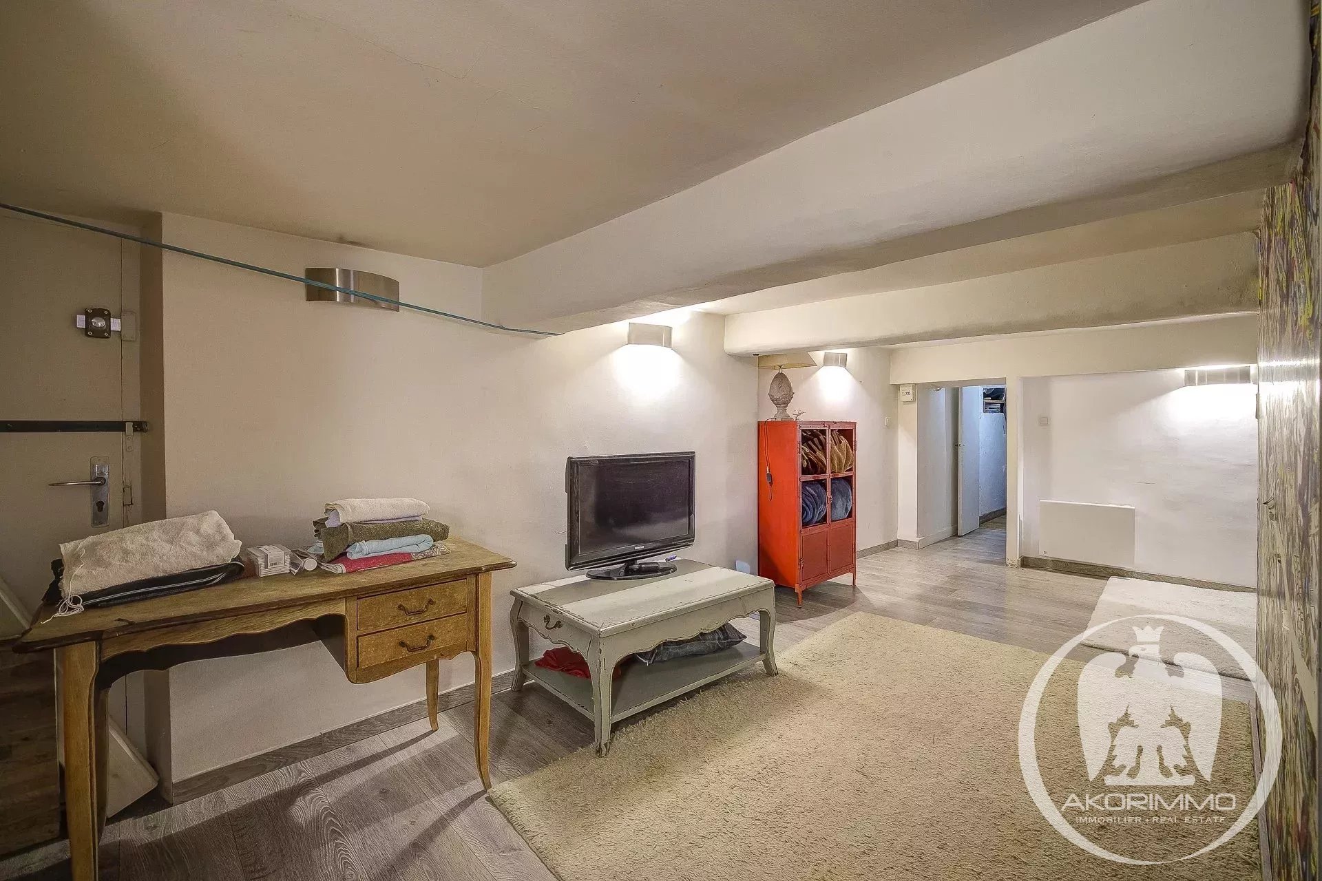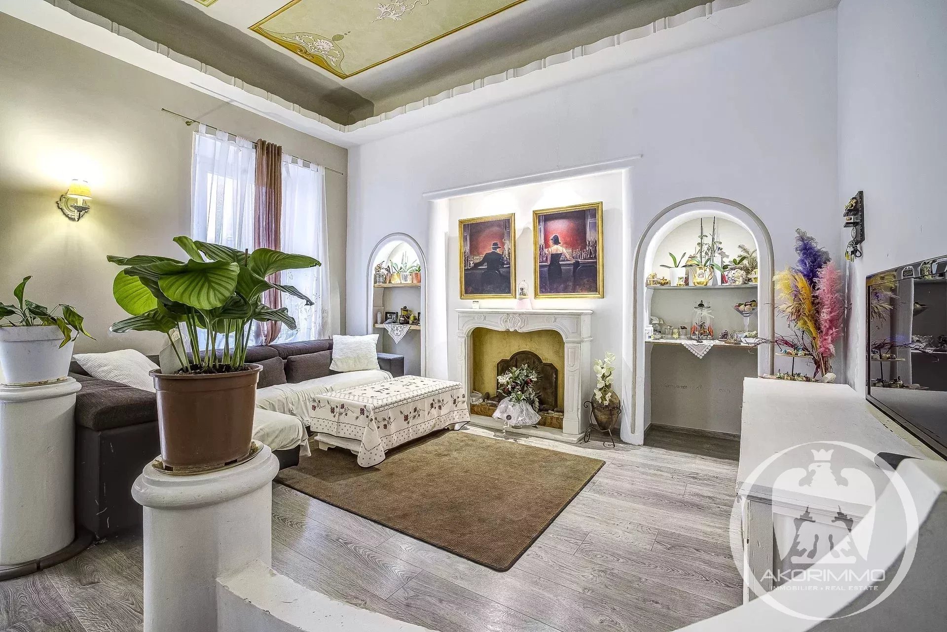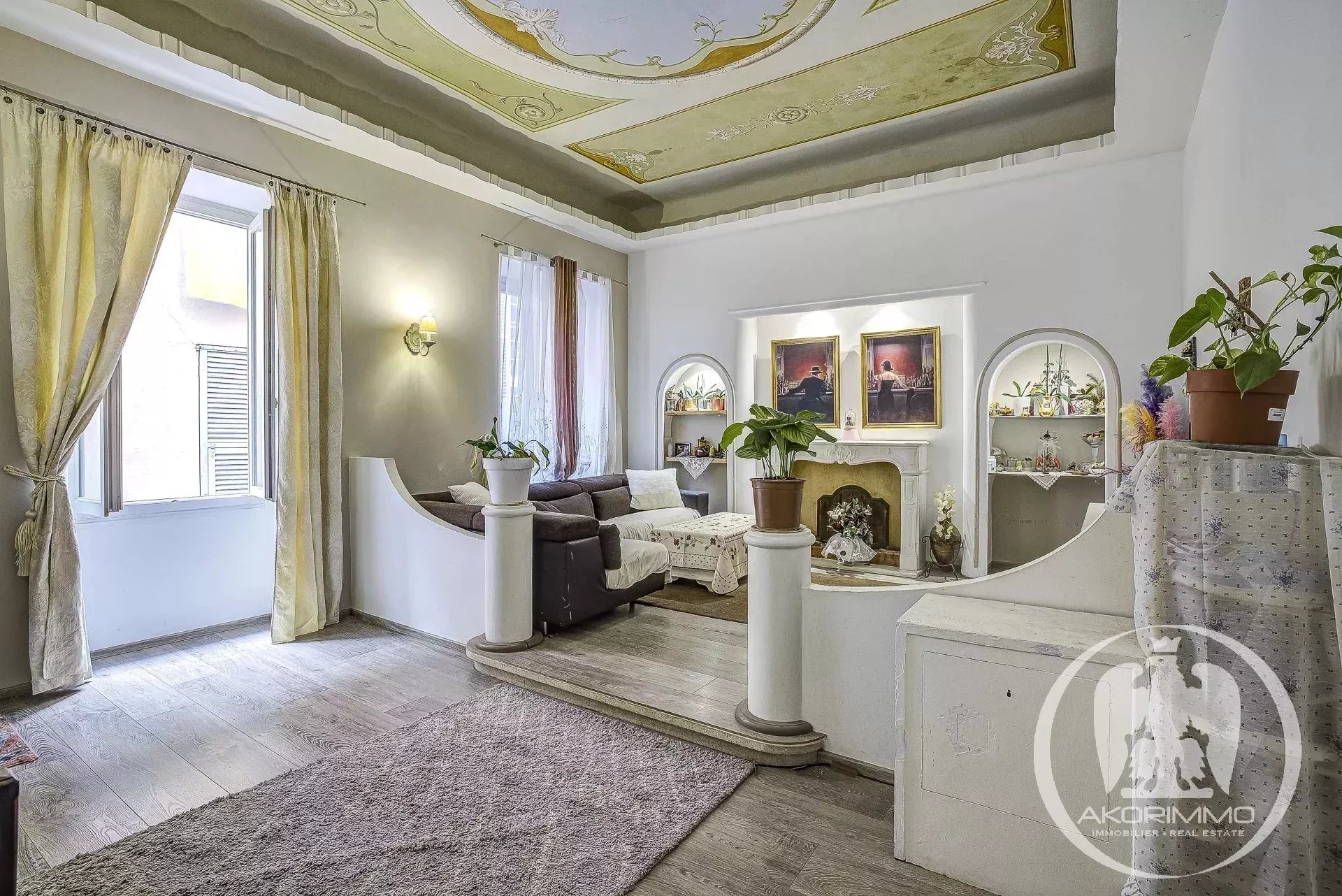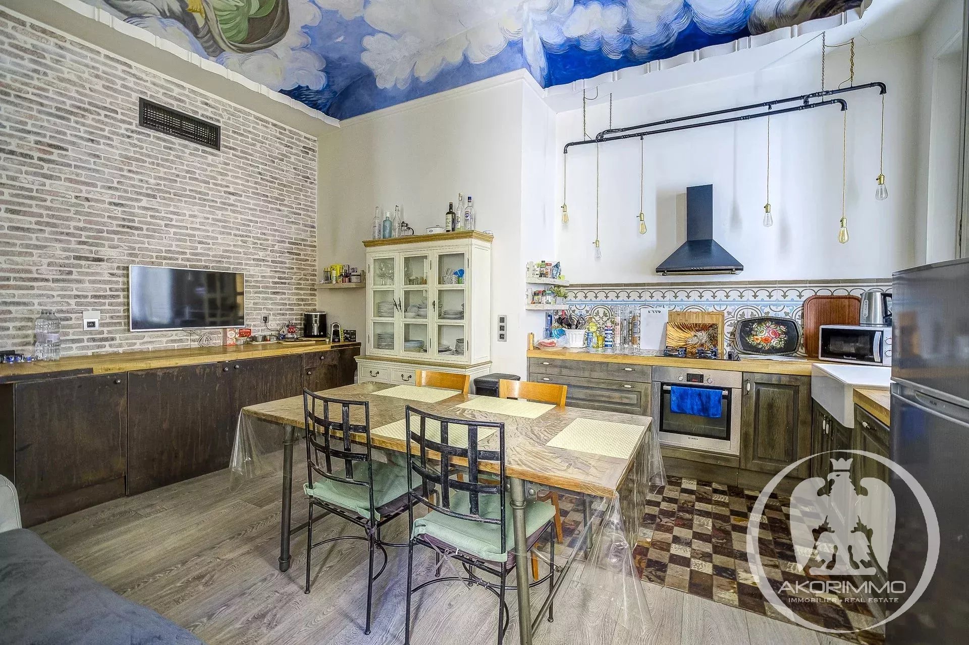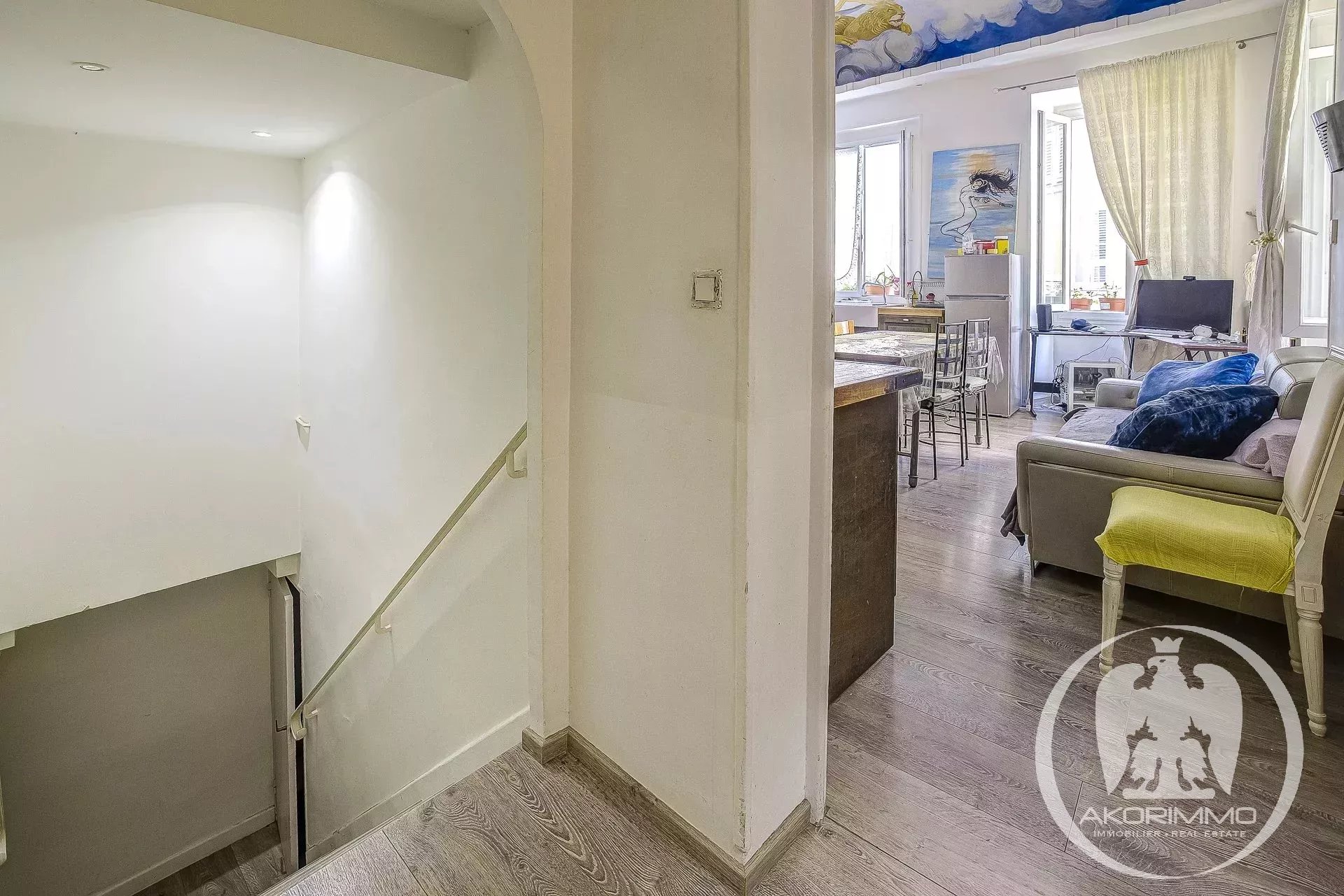 4 Pièces en duplex Vieux Nice A deux pas de la mer, bel ancien entretenu, 2° et 1° étage composé d'un séjour, d'une vaste cuisine d'angle, d'une chambre de maître avec salle d'eau en suite, à l'étage du dessous, 2 chambres et une salle d'eau avec W.C. Plafonds hauts peints et moulurés- double vitrage, climatisation sous gaine Copropriété 2880 euros/mois- commission vendeur