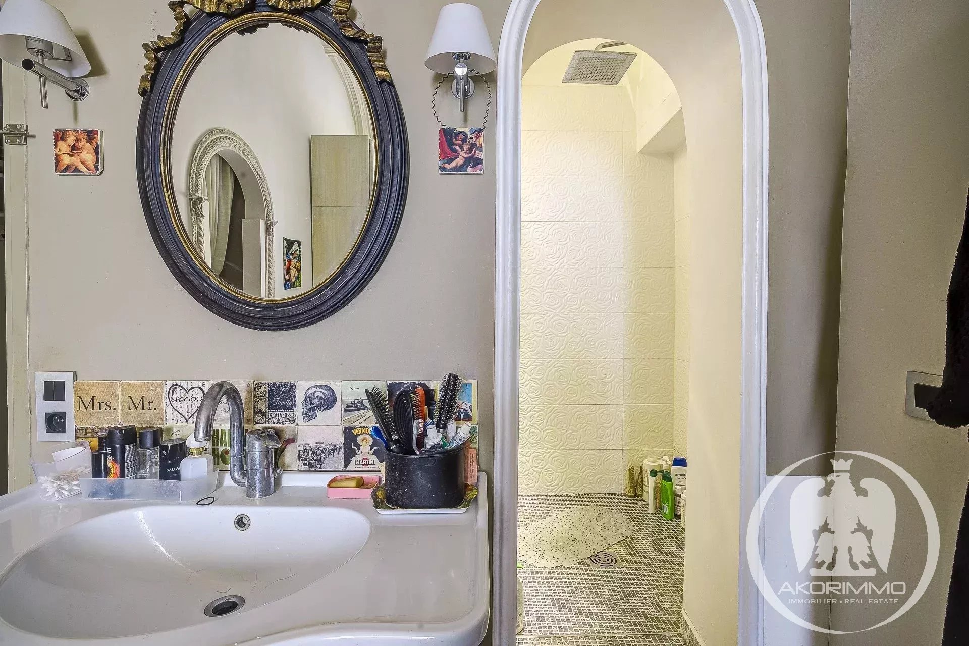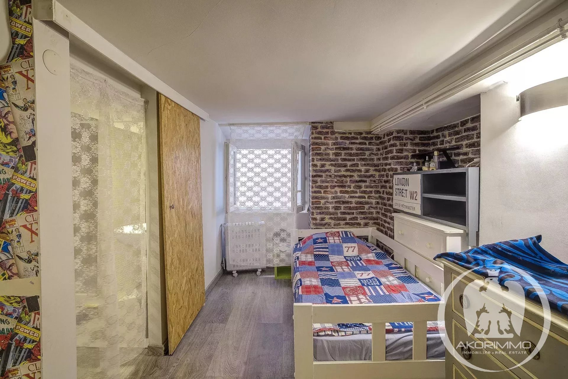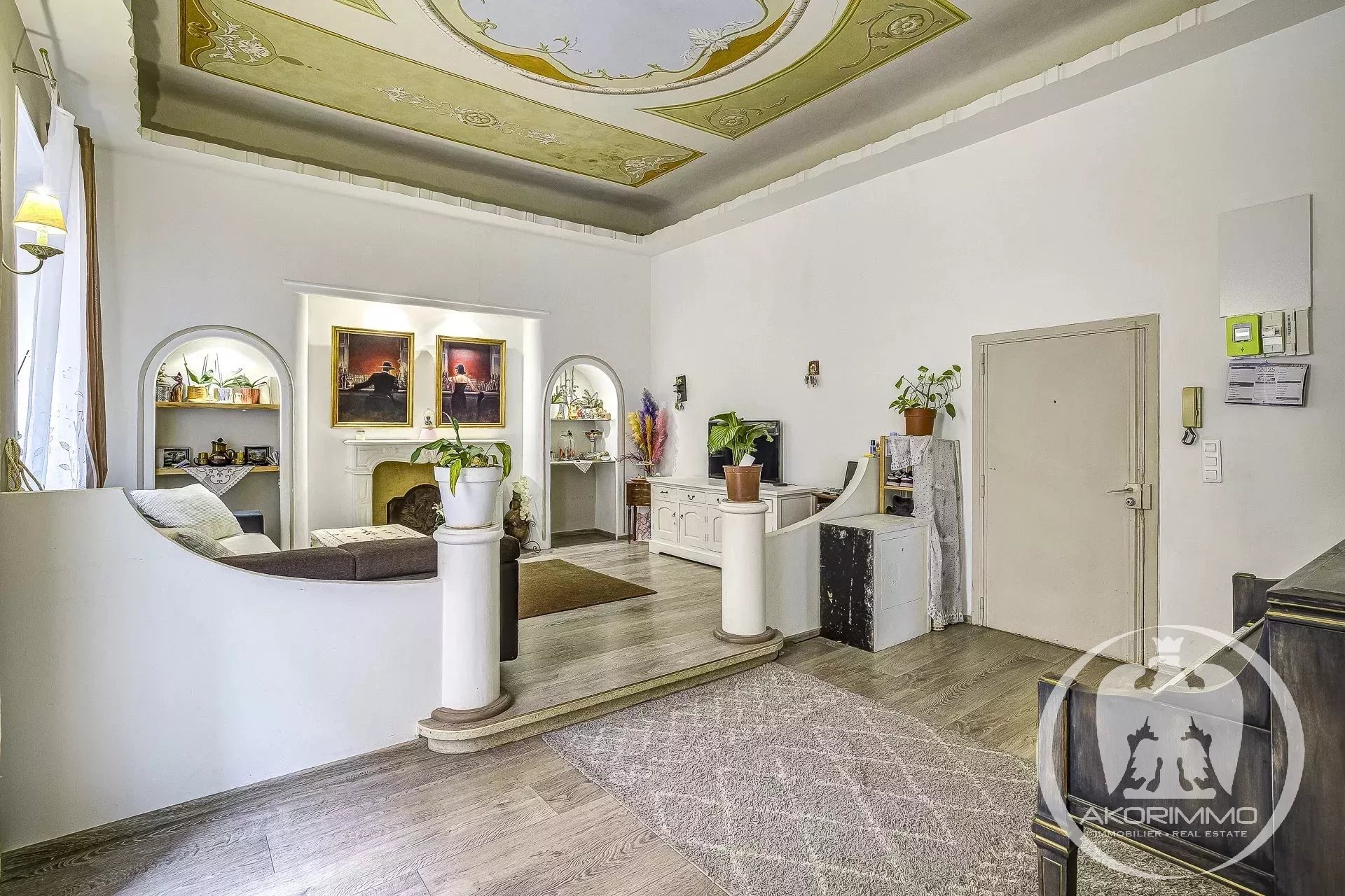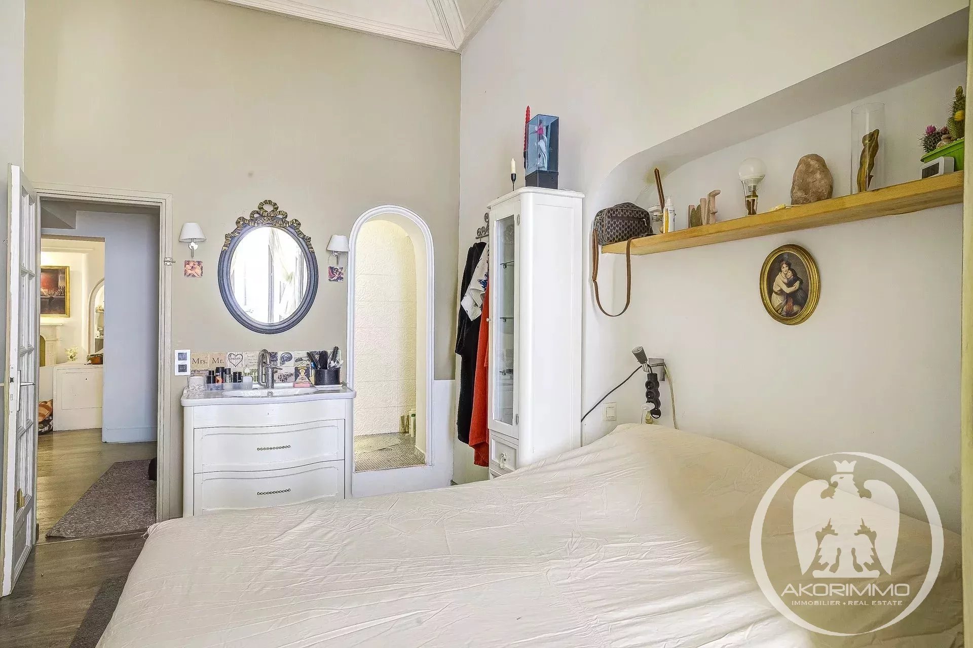 4 Pièces en duplex Vieux Nice A deux pas de la mer, bel ancien entretenu, 2° et 1° étage composé d'un séjour, d'une vaste cuisine d'angle, d'une chambre de maître avec salle d'eau en suite, à l'étage du dessous, 2 chambres et une salle d'eau avec W.C. Plafonds hauts peints et moulurés- double vitrage, climatisation sous gaine Copropriété 2880 euros/mois- commission vendeur